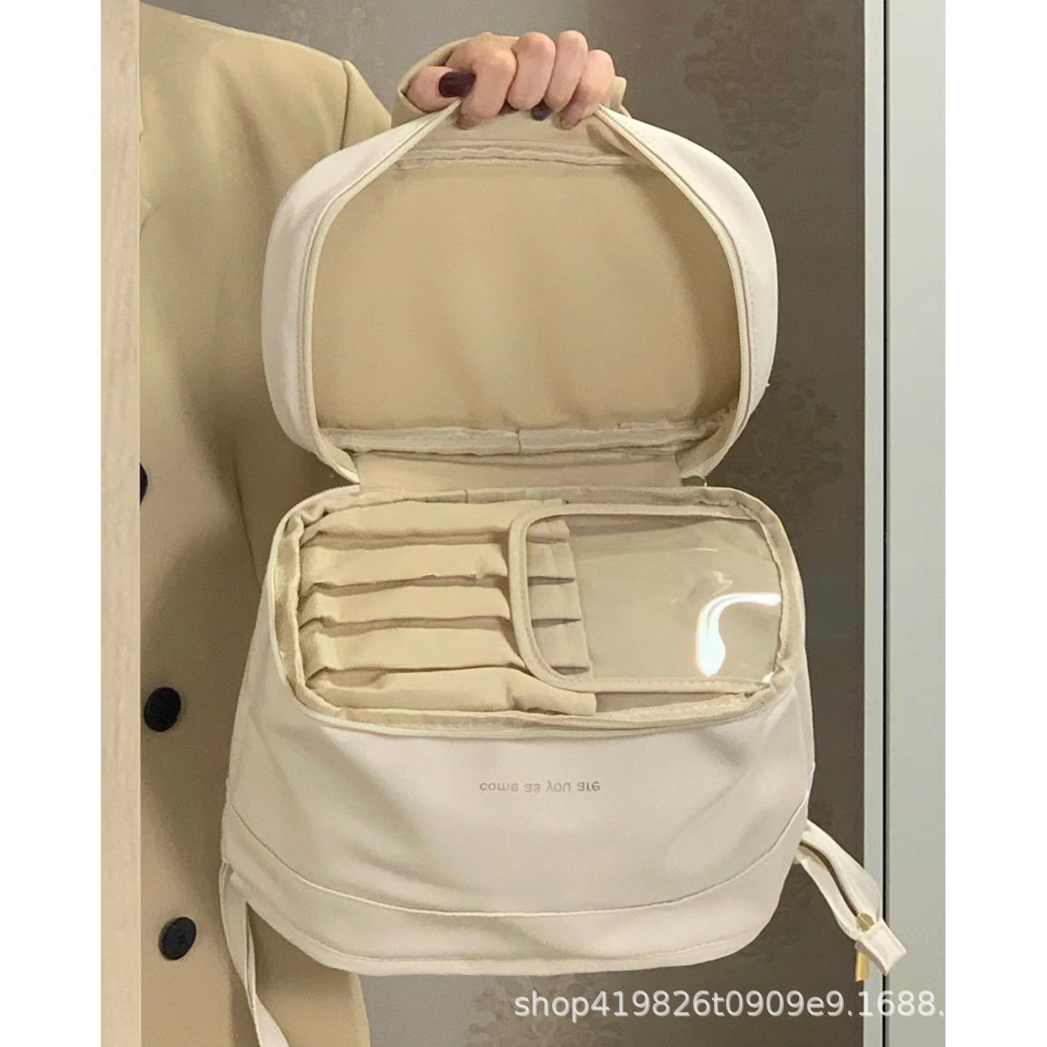 2023 새로운 대용량 같은 스타일 자이언트 클라우드 화장품 가방 더블 레이어 여성 휴대용 화장품 보관 상자 가방스토어 가기