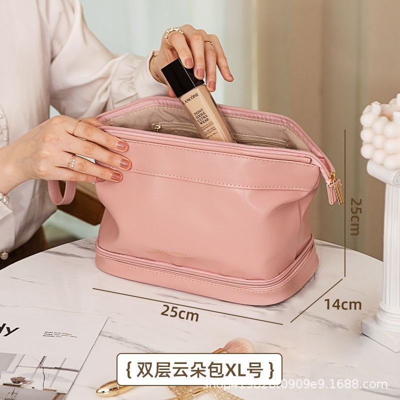 2023 새로운 대용량 같은 스타일 자이언트 클라우드 화장품 가방 더블 레이어 여성 휴대용 화장품 보관 상자 가방