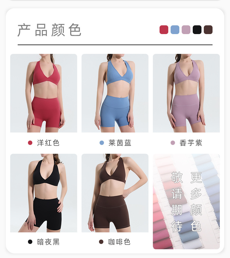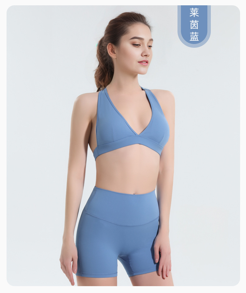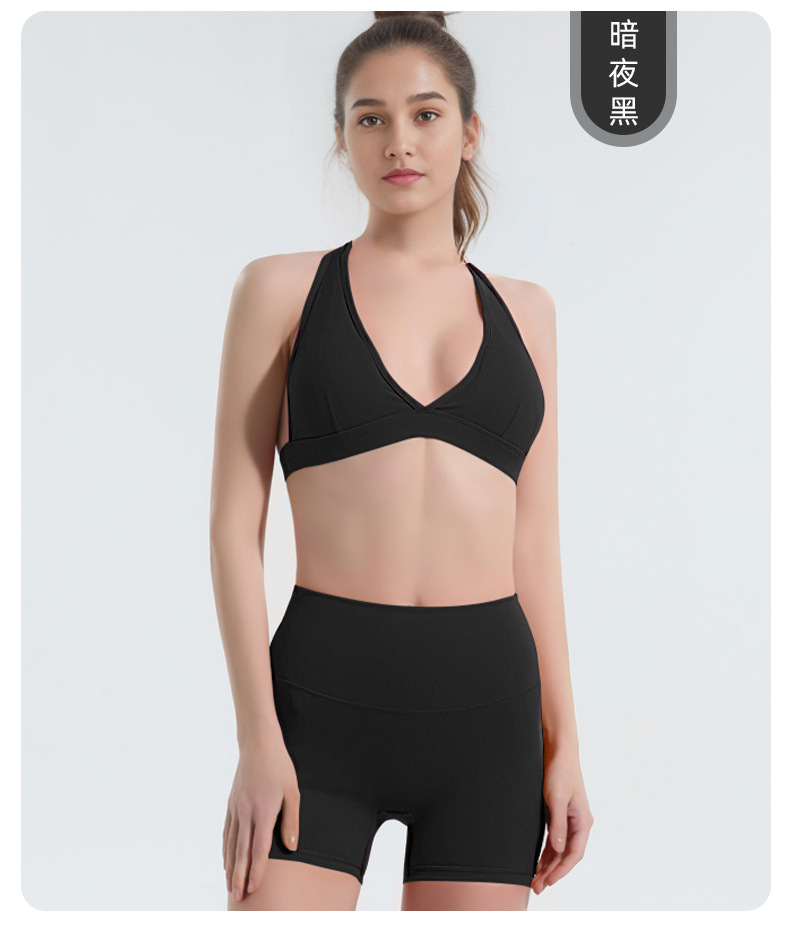 유럽과 미국 목 스포츠 속옷 여성의 높은 허리 배꼽 엉덩이 바지 여름 속건 가슴 매트 요가 의류 세트 도매스토어 가기