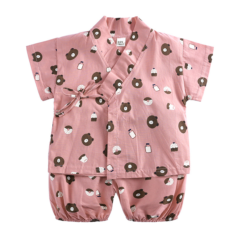 【产品名称】小童开衫系带睡衣套装夏款男女童宝宝满印花家居服韩版童装批发