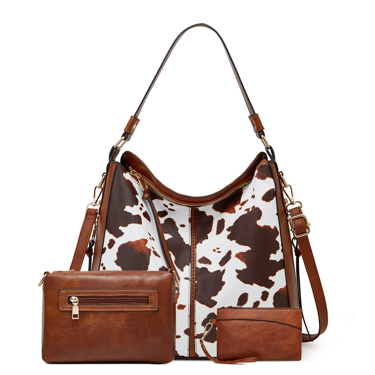 • 우유 패턴을 다크 브라운 3 피스 세트