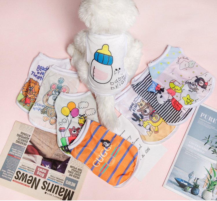 직접 판매 개 옷 봄과 여름 얇은 프랑스 양동이 Corgi pug 작은 개 얼음 실크면 천 안티 린트 애완 동물 조끼스토어 가기