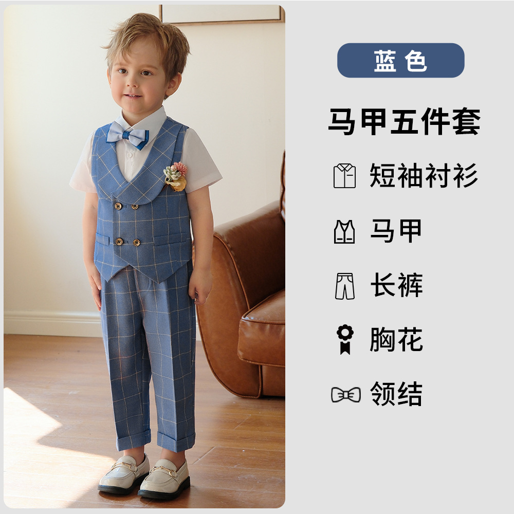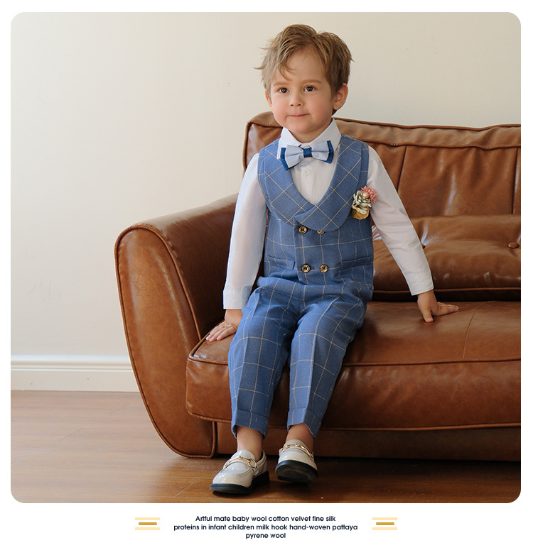 어린이 세트 새로운 격자 무늬 조끼 세트 세트 소년의 아기 성능 사진 세트 꽃 소년의 결혼식 원피스스토어 가기
