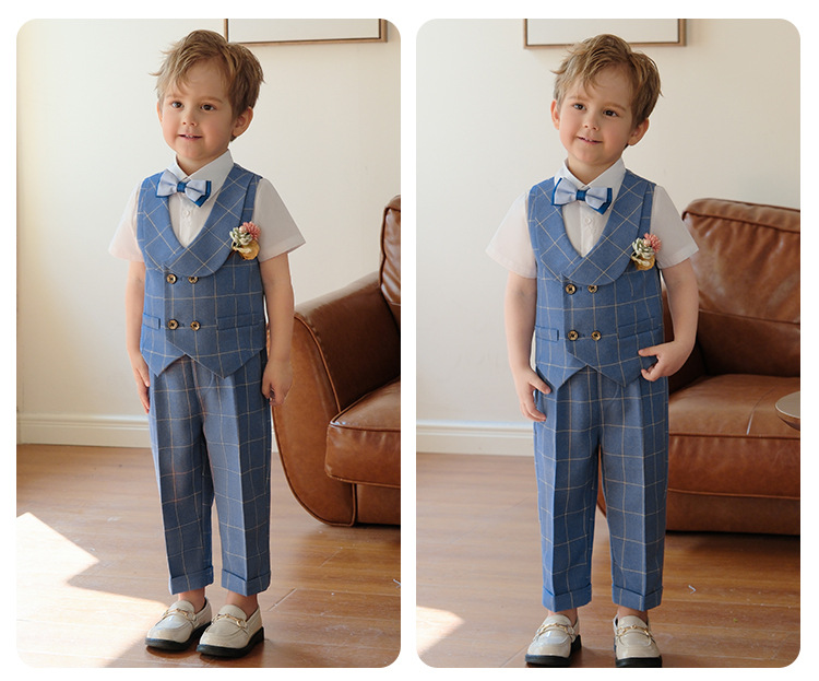 어린이 세트 새로운 격자 무늬 조끼 세트 세트 소년의 아기 성능 사진 세트 꽃 소년의 결혼식 원피스