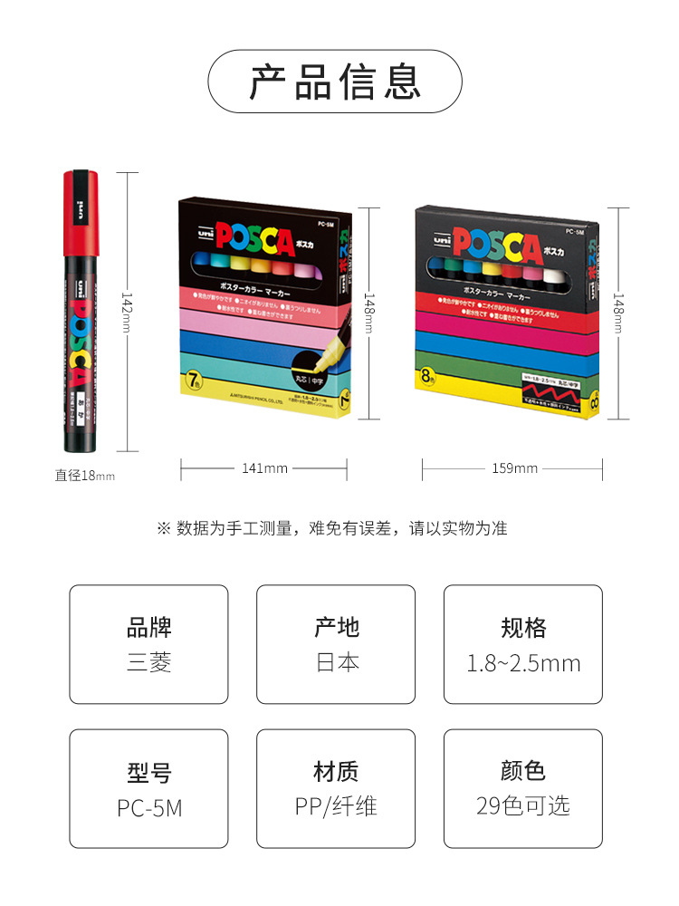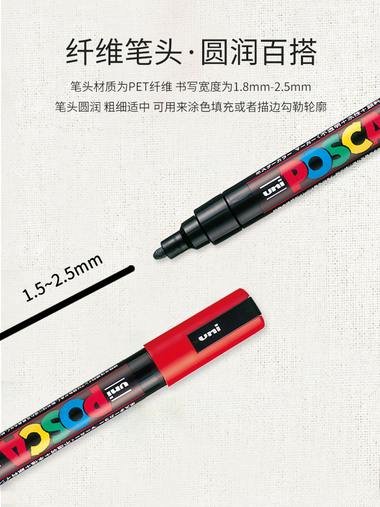 일본 UNI Mitsubishi POSCA 포스터 광고 펜 PC-5M 수성 그림 낙서 디자인 펜 마커 펜 둥근 머리스토어 가기
