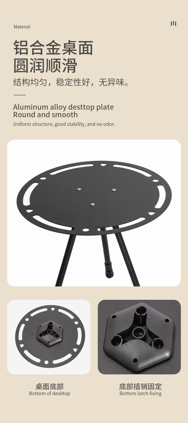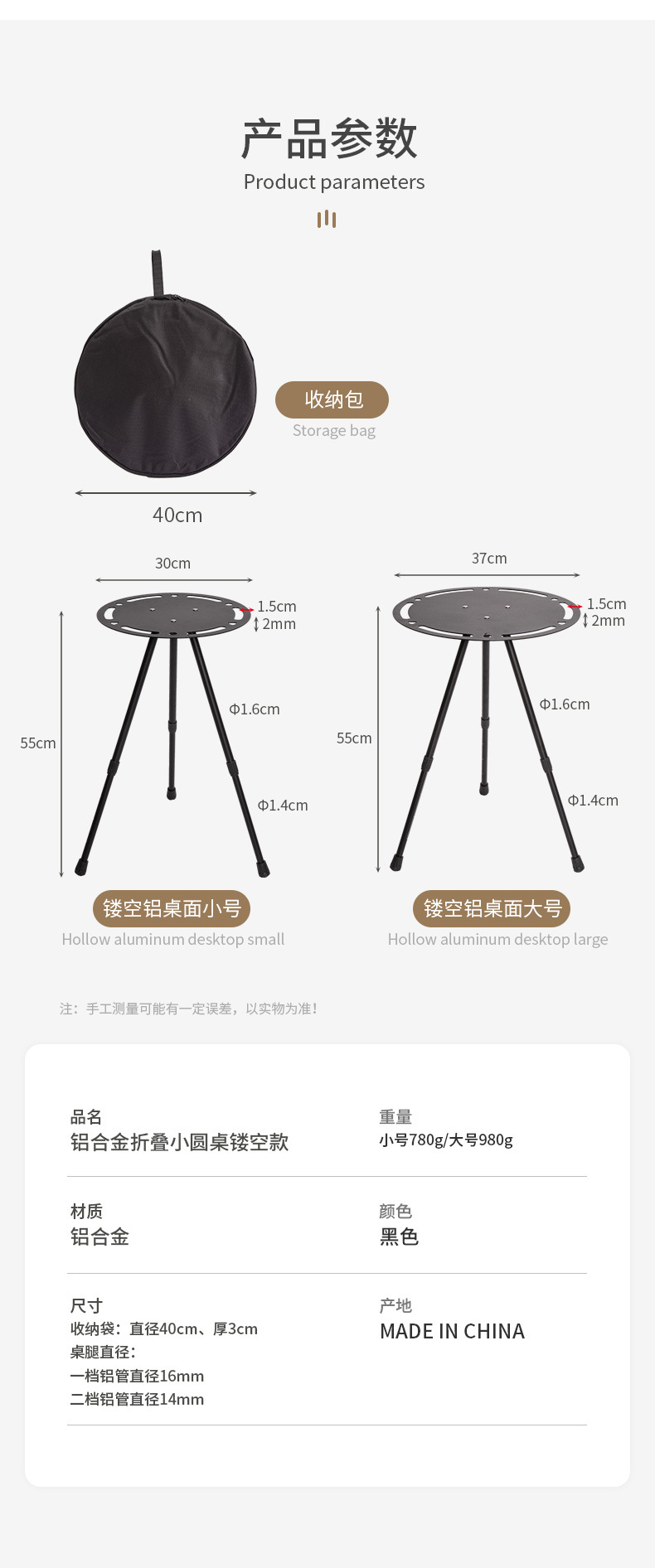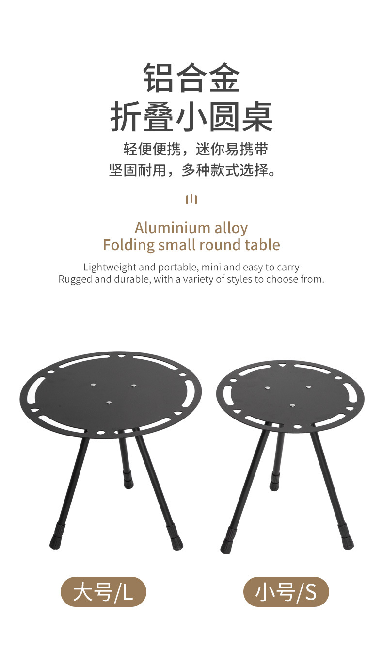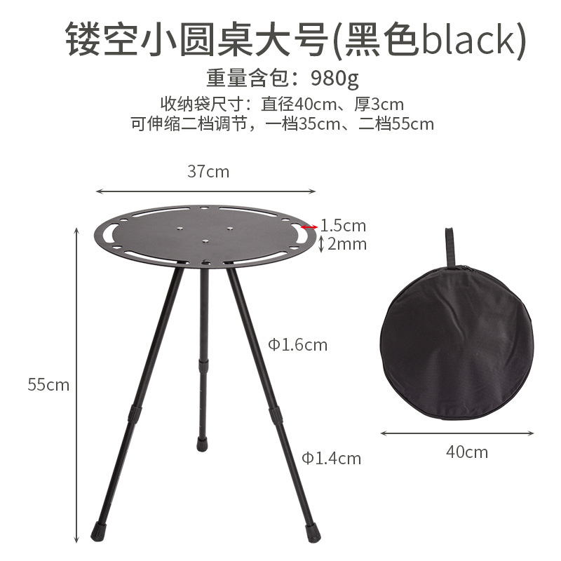 야외 알루미늄 합금 접이식 작은 원형 테이블 캠핑 캠핑 리프트 블랙 테이블 식탁 오토바이 여행 티 테이블 알루미늄 테이블