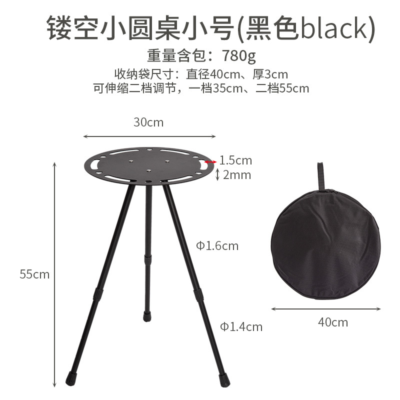 야외 알루미늄 합금 접이식 작은 원형 테이블 캠핑 캠핑 리프트 블랙 테이블 식탁 오토바이 여행 티 테이블 알루미늄 테이블스토어 가기