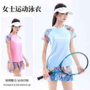 泳衣女2025新款时尚运动保守遮肚显瘦学生少女分体裙式游泳装批发