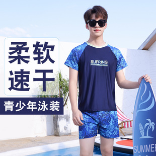 青少年泳衣夏季新款男童中大童泳衣涤亚速干顺滑分体式三件套泳装