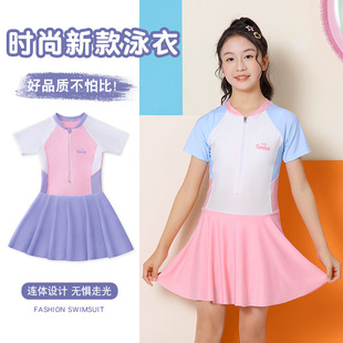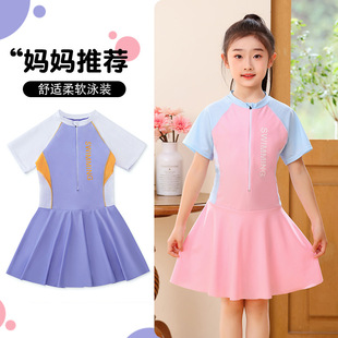 儿童泳衣2025新款时尚顺滑速干连体裙式防晒中大童女孩游泳衣批发