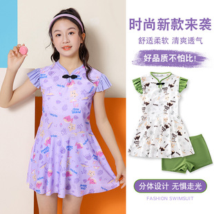 新款儿童泳衣旗袍中国风女童分体游泳衣中大童涤亚款少女泳装批发