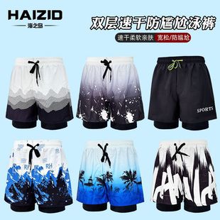 新款泳裤男士双层防尴尬游泳裤专业速干泡温泉度假沙滩裤厂家直销