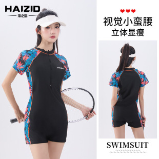 新款运动泳衣女款平角保守遮肚显瘦长短袖温泉度假专业游泳衣批发