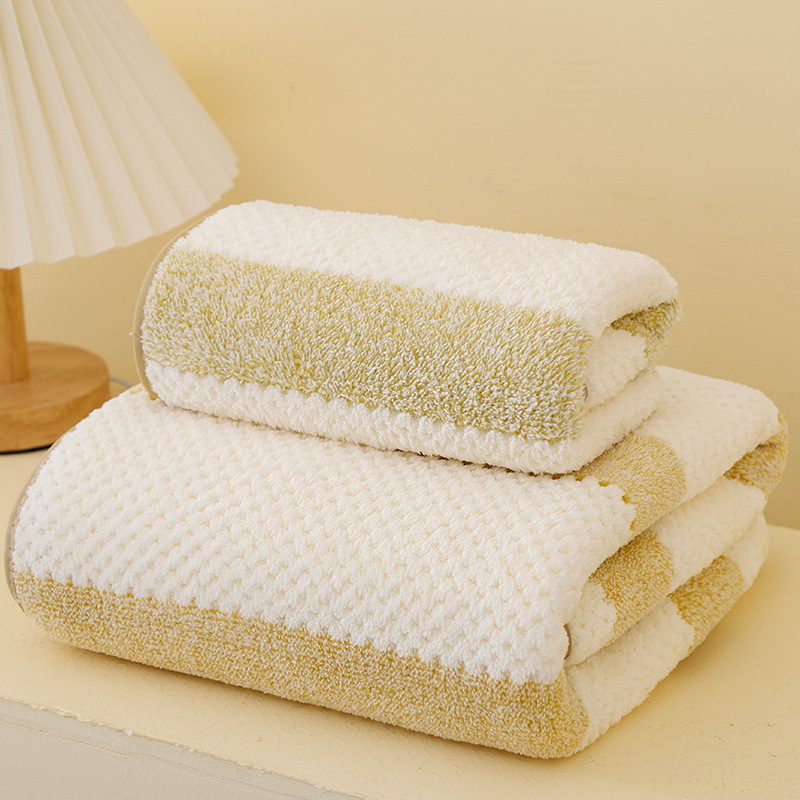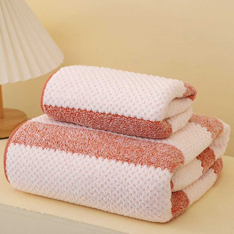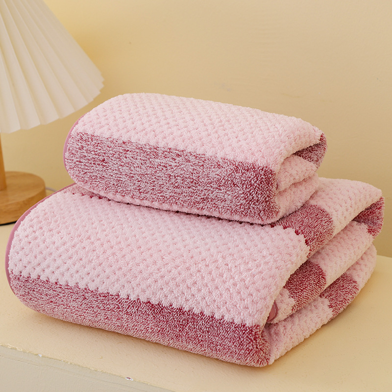 두꺼운 베이비 스타 파인애플 산호 양털 수건 목욕 수건 2 종 세트 가정용 부드럽고 쉬운 흡수성 선물 수건