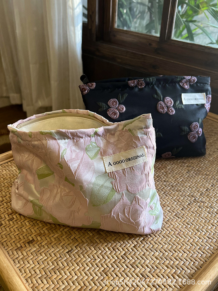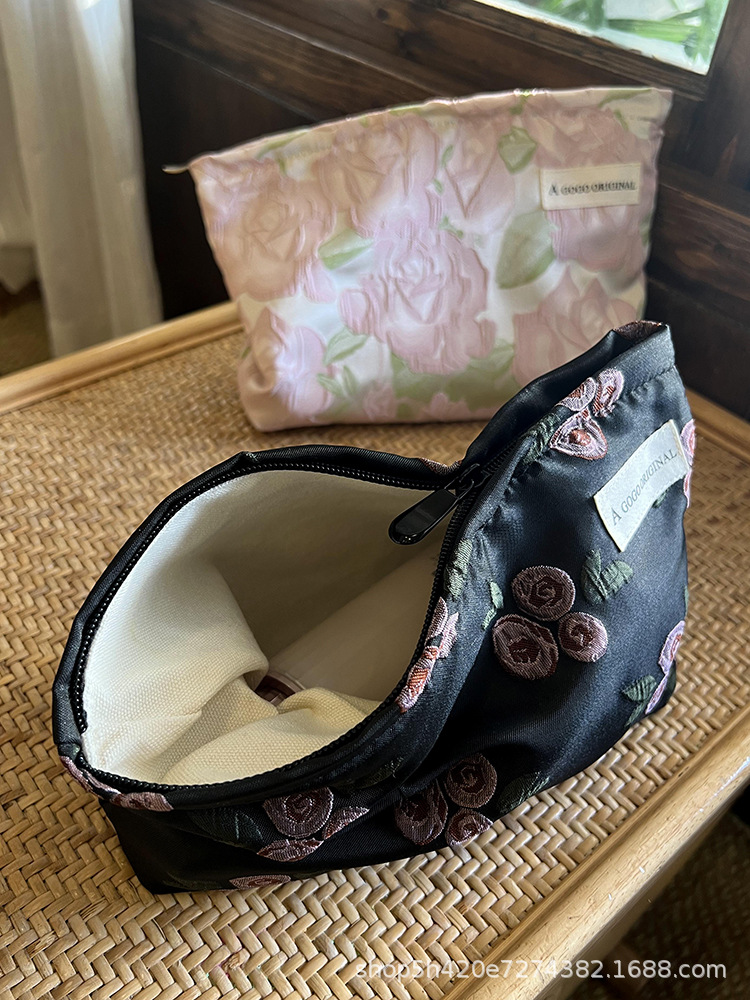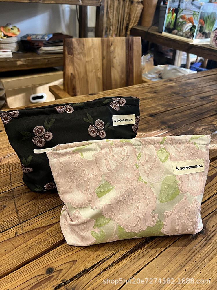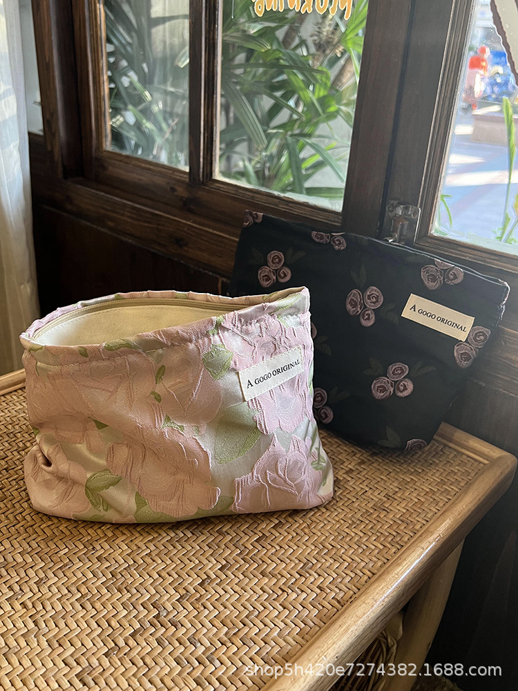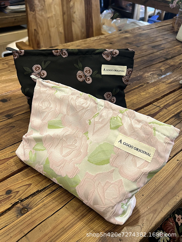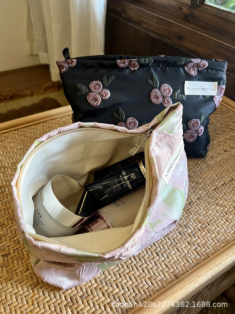 아마존 신선한 장미 화장품 가방 새로운 대용량 휴대용 스킨 케어 보관 가방 여행 세척 가방