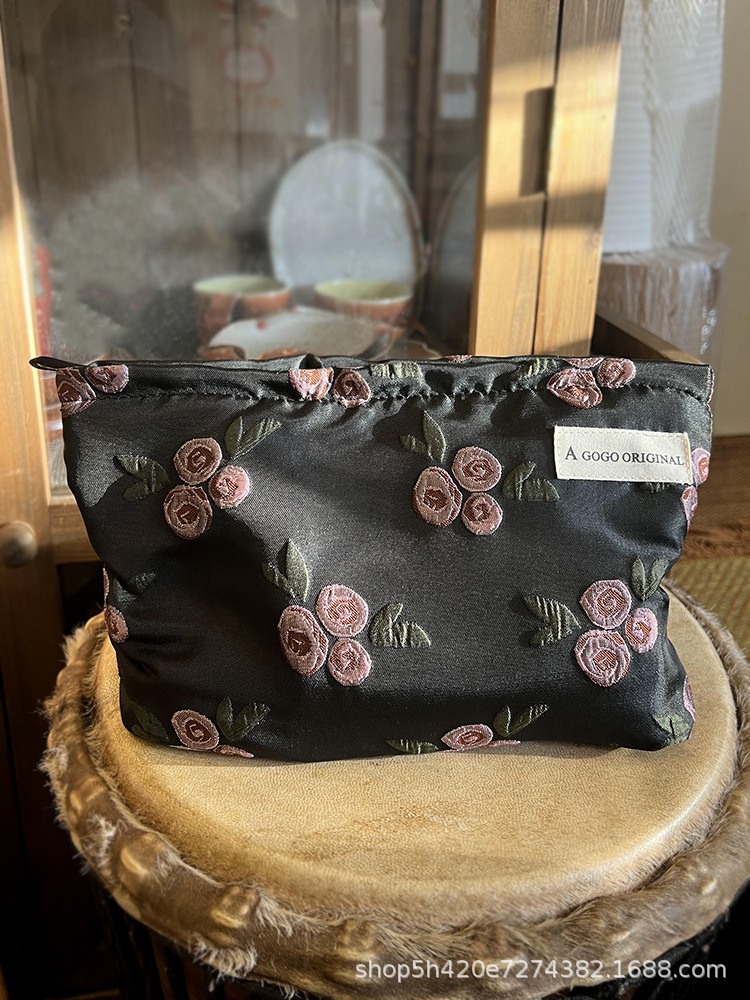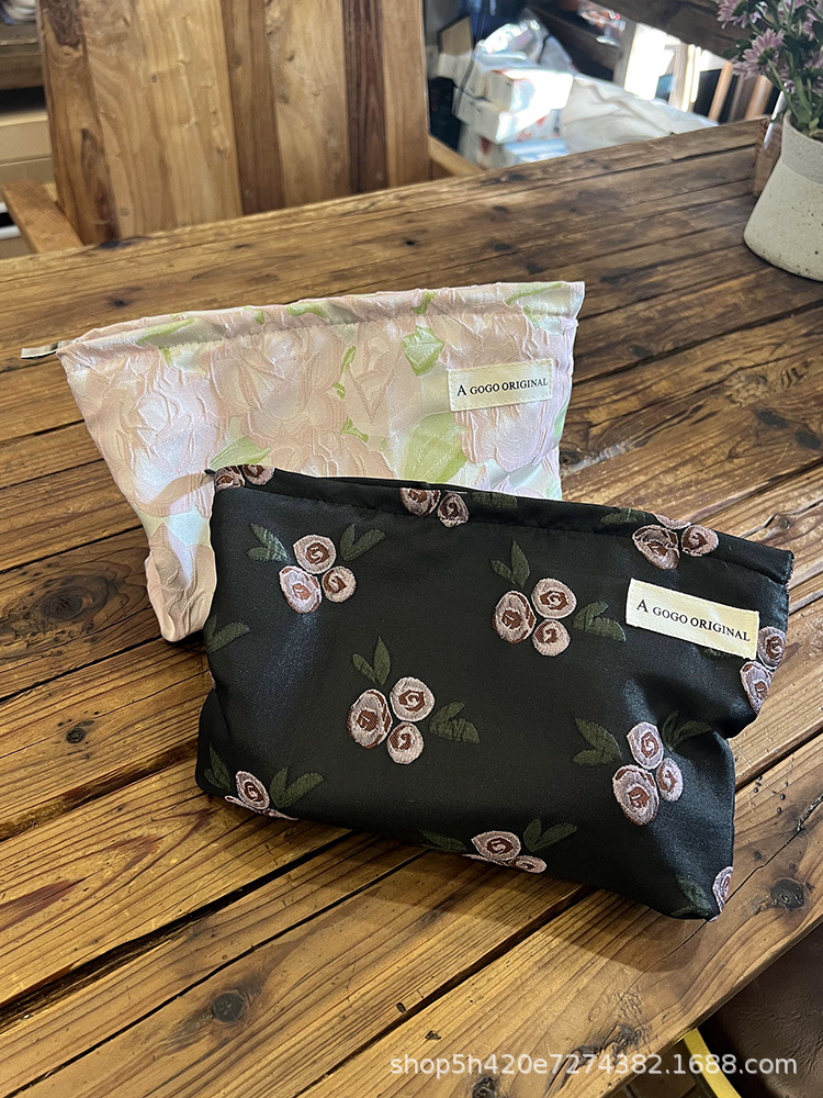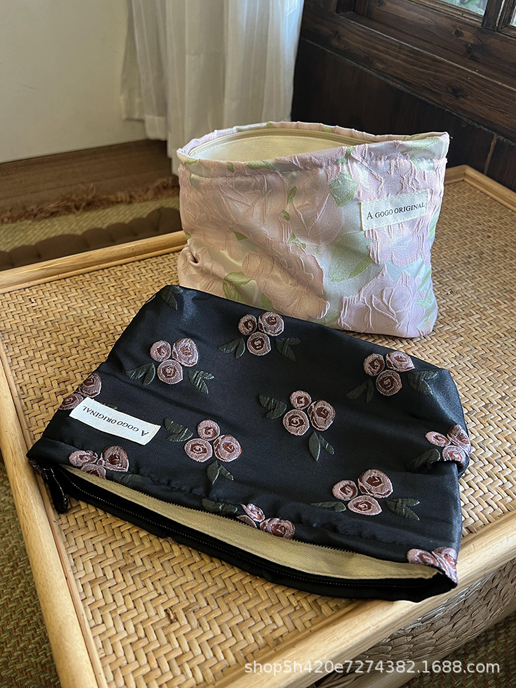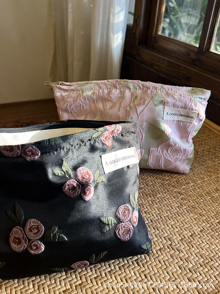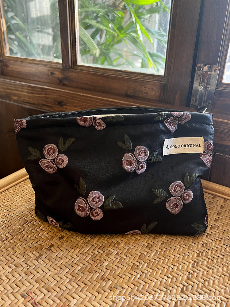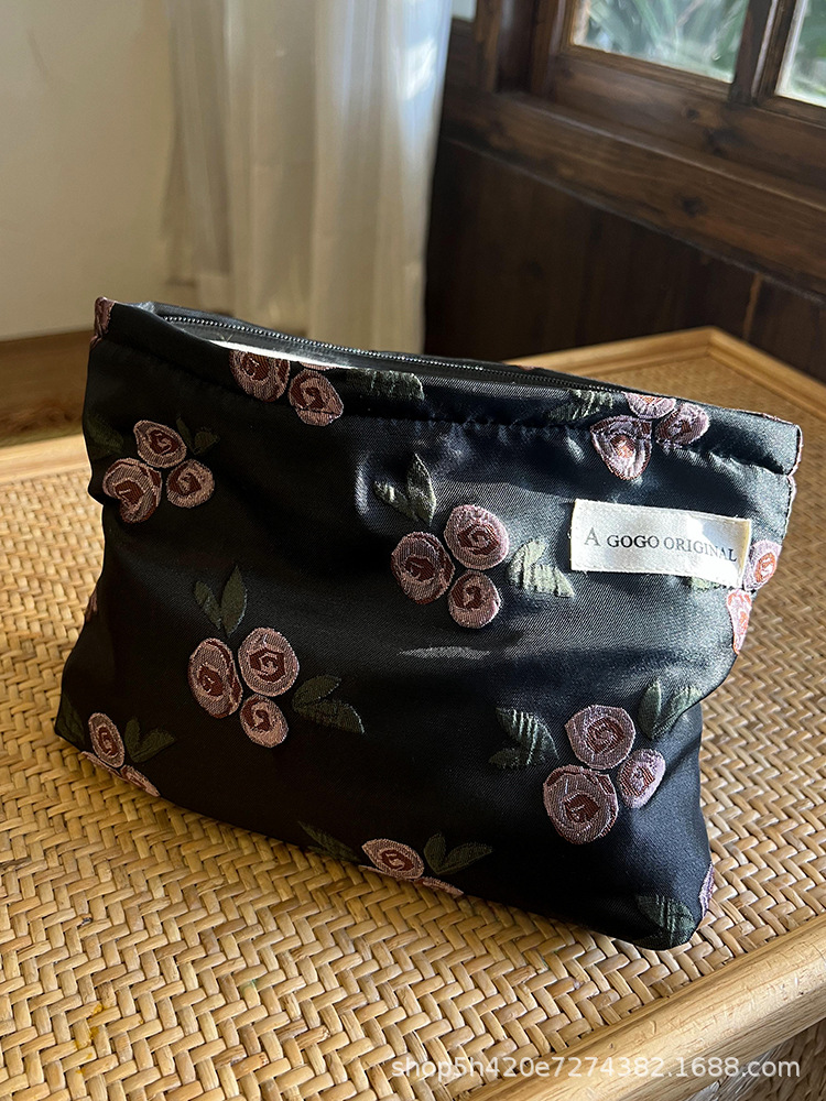 아마존 신선한 장미 화장품 가방 새로운 대용량 휴대용 스킨 케어 보관 가방 여행 세척 가방