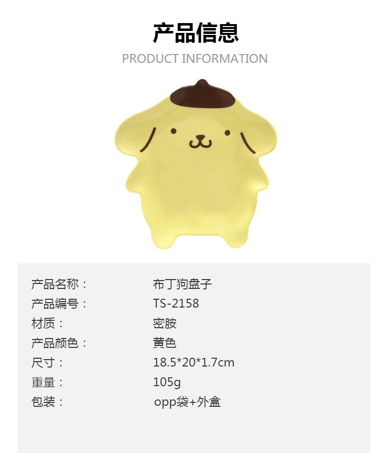 수출 일본 노란 만화 Pompurin 간식 접시 귀여운 푸딩 개 접시 스시 접시 빵 간식 접시