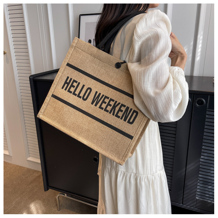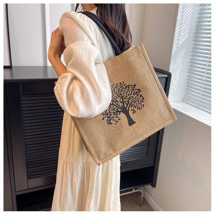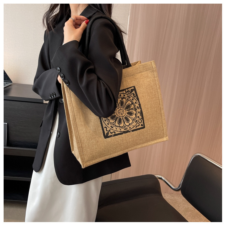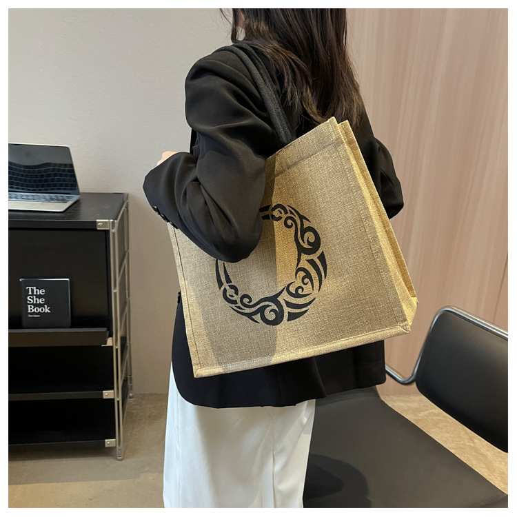 여성을위한 대용량 리넨 가방 2024 패션 리넨 휴대용 엄마 가방 학생 클래스 어깨 토트 백 재고 있음스토어 가기
