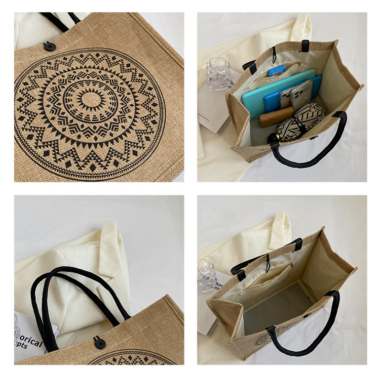 여성을위한 대용량 리넨 가방 2024 패션 리넨 휴대용 엄마 가방 학생 클래스 어깨 토트 백 재고 있음