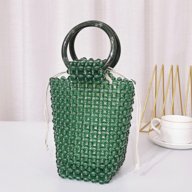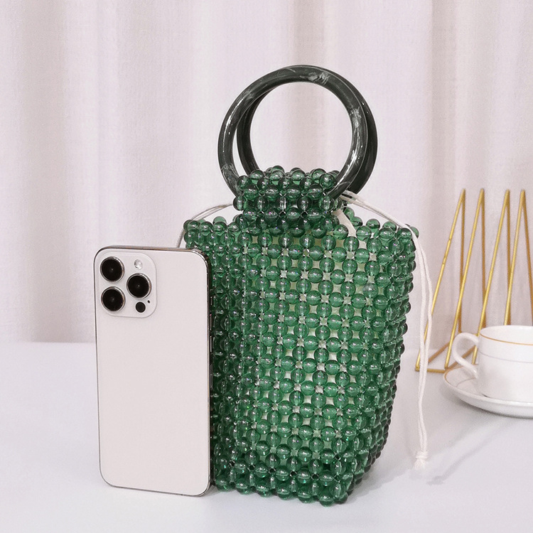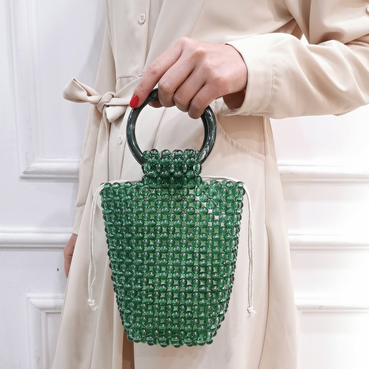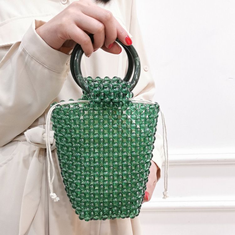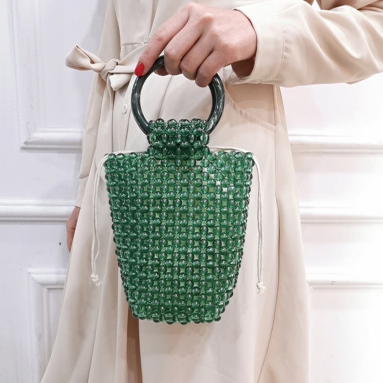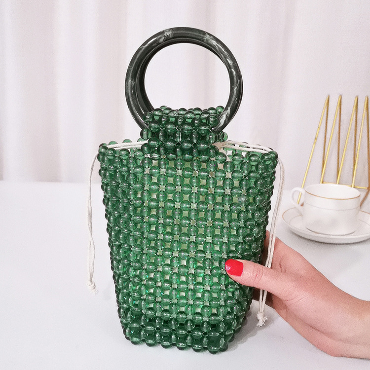 새로운 수제 페르시 크리스탈 에메랄드 투명 핸드백 아크릴 중공 버킷 비치 여성용 핸드백
