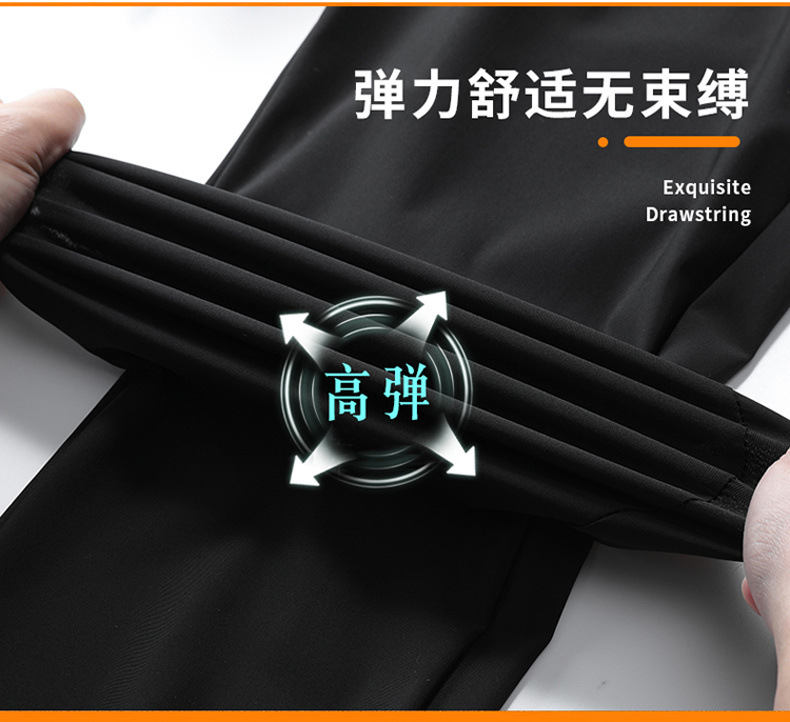 여름 아이스 실크 바지 스트레이트 남성용 얇은 발목 바지 남성용 속건 루즈한 스웨트 팬츠 스포츠 캐주얼 바지 남성복