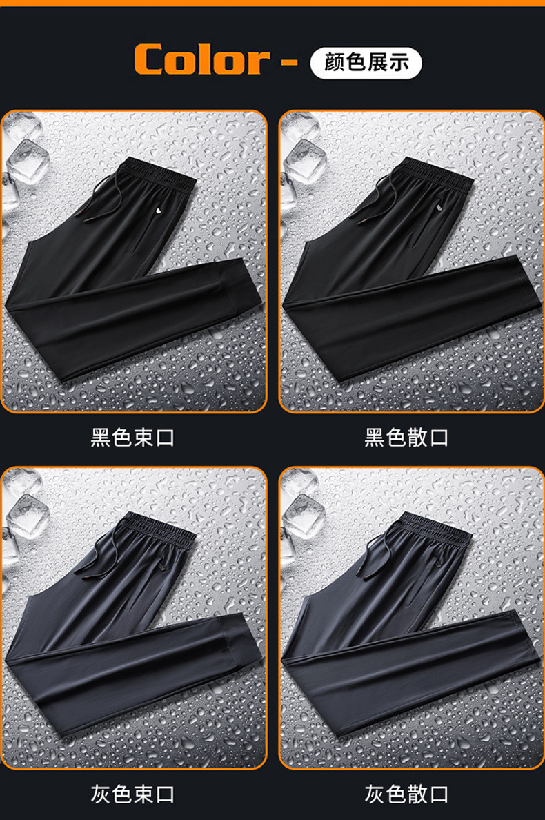 여름 아이스 실크 바지 스트레이트 남성용 얇은 발목 바지 남성용 속건 루즈한 스웨트 팬츠 스포츠 캐주얼 바지 남성복스토어 가기