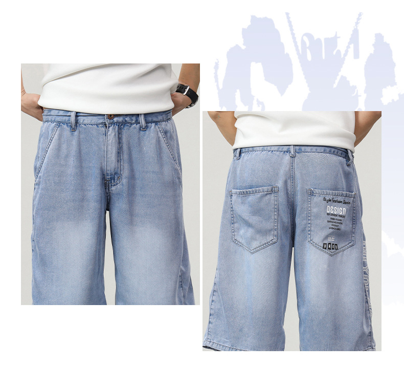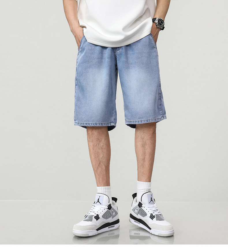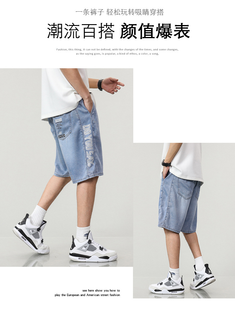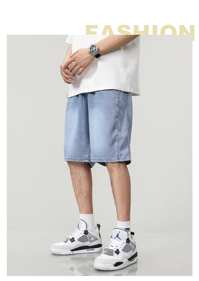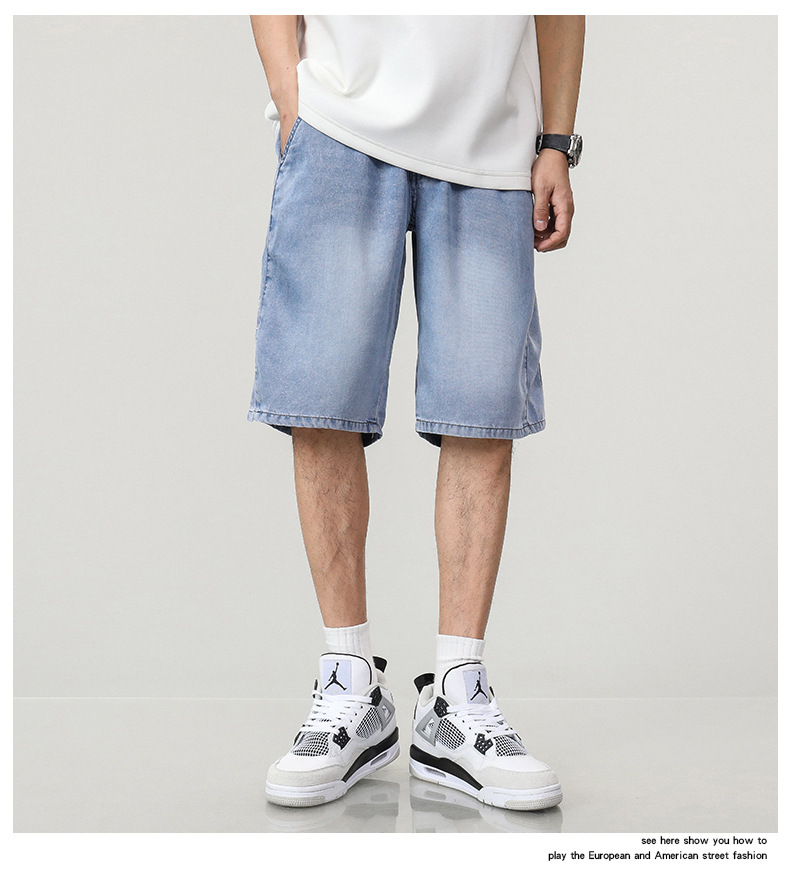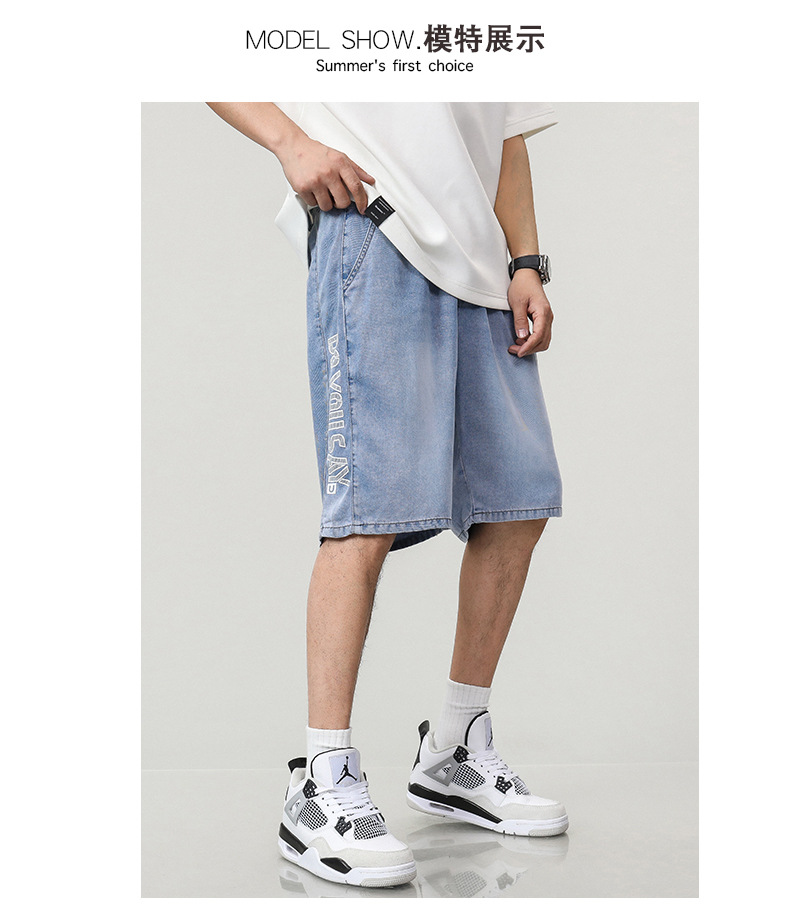 XD711 | 플러스 사이즈 남자의 여름 새로운 텐셀 6 청바지 느슨한 플러스 사이즈 간단한 데님 반바지 남자스토어 가기