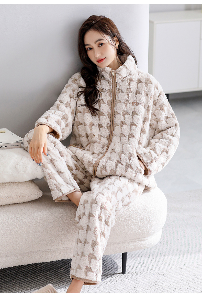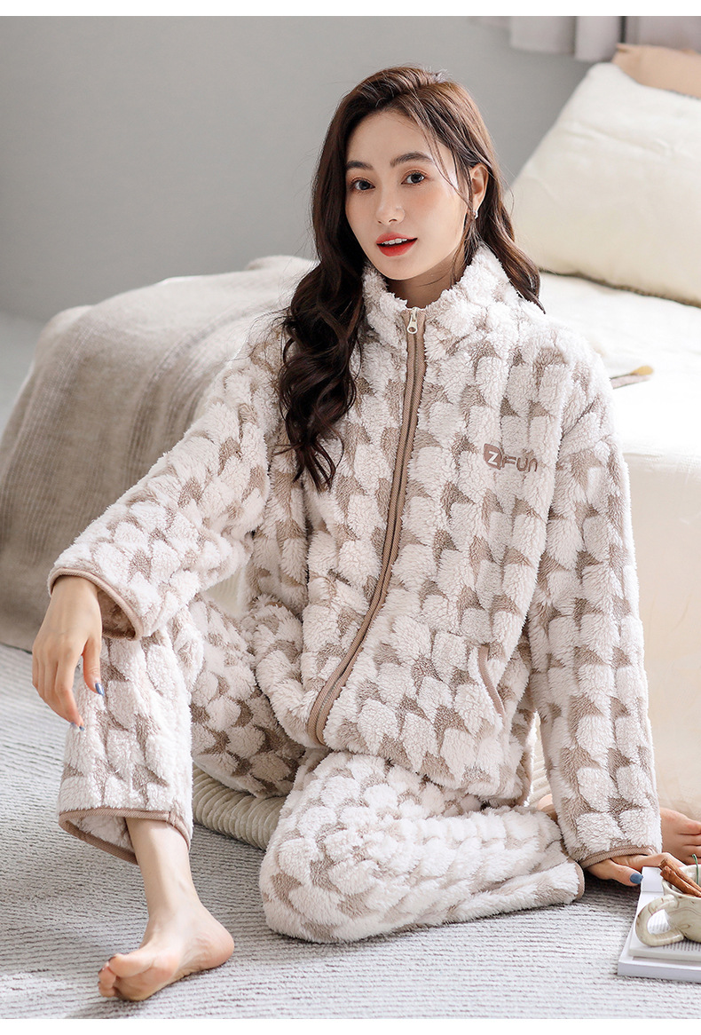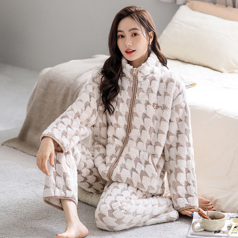 샤넬 옷깃 여자의 잠옷 겨울 플란넬 두꺼운 기모 따뜻한 느슨한 가정 의류 가을과 겨울스토어 가기