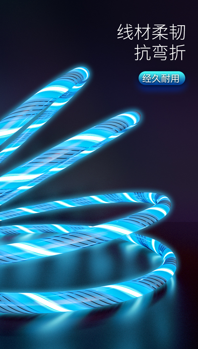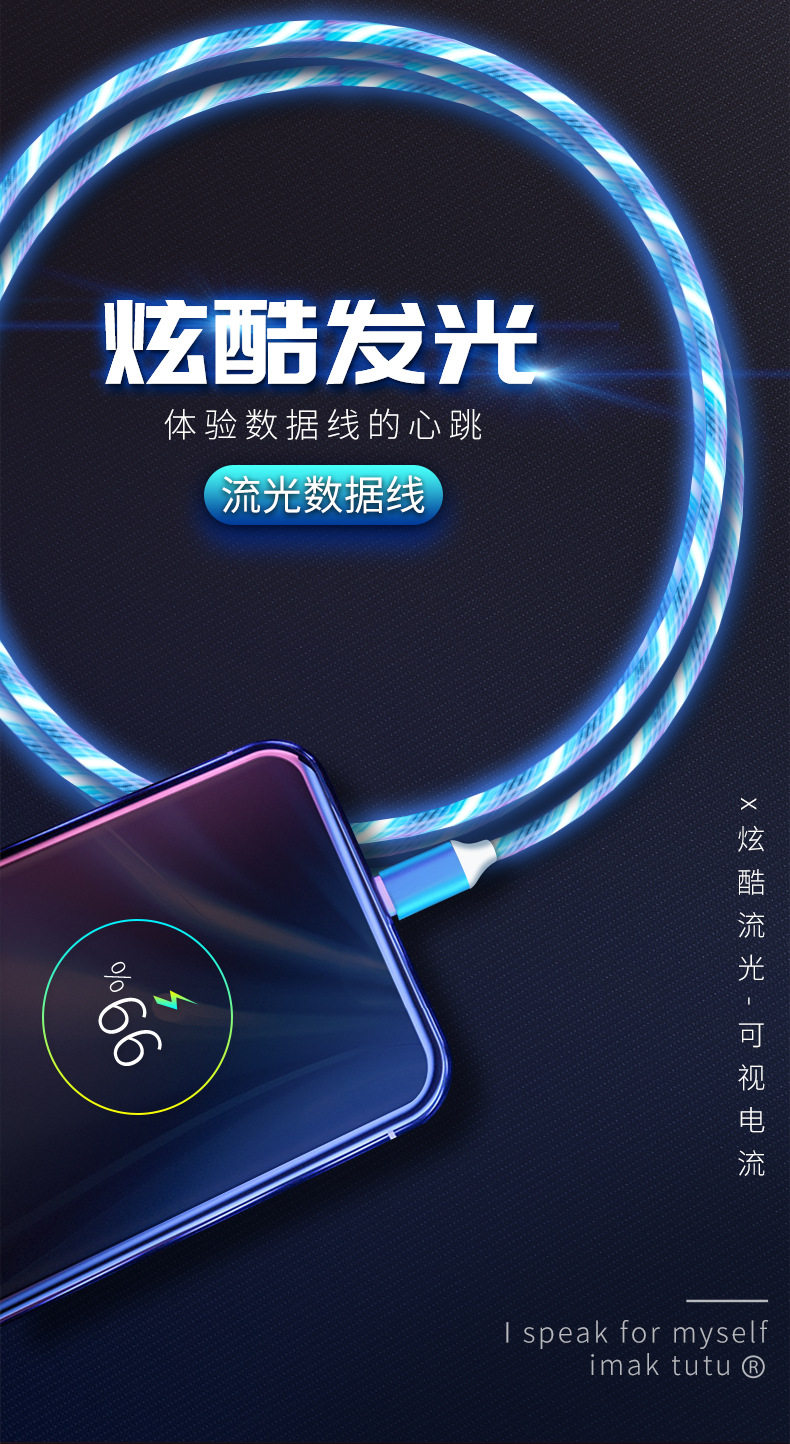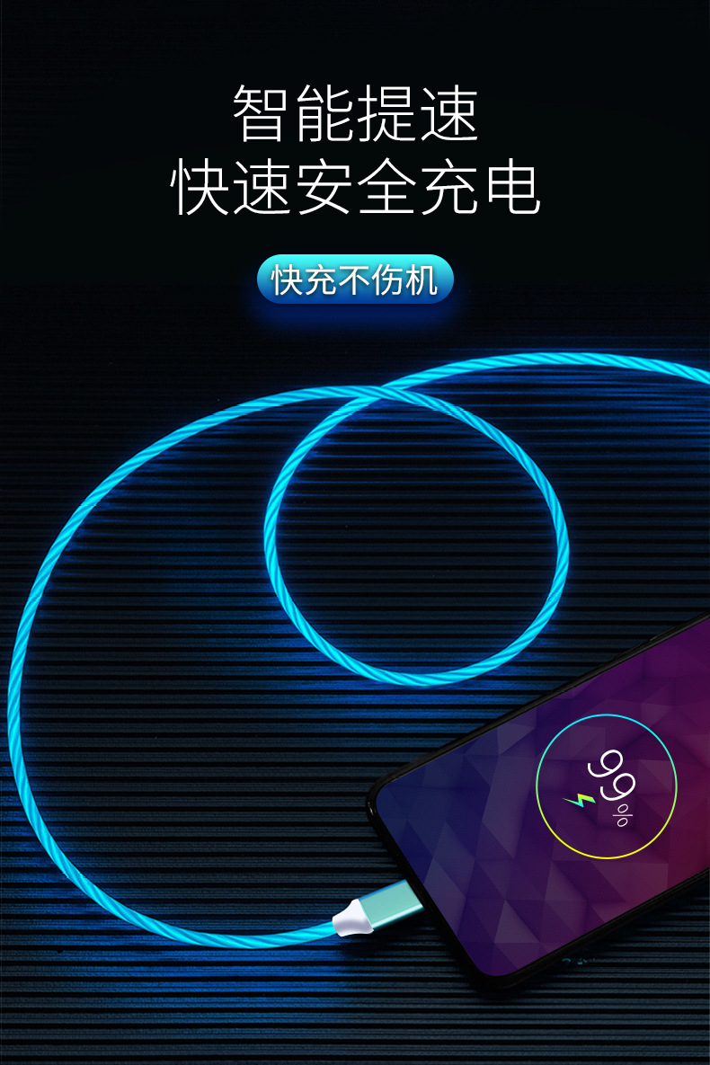 스트리머 데이터 라인 단일 포트 Android Type-c에 적용 가능 Apple 범용 1 m 2 m 발광 충전 라인 윤곽