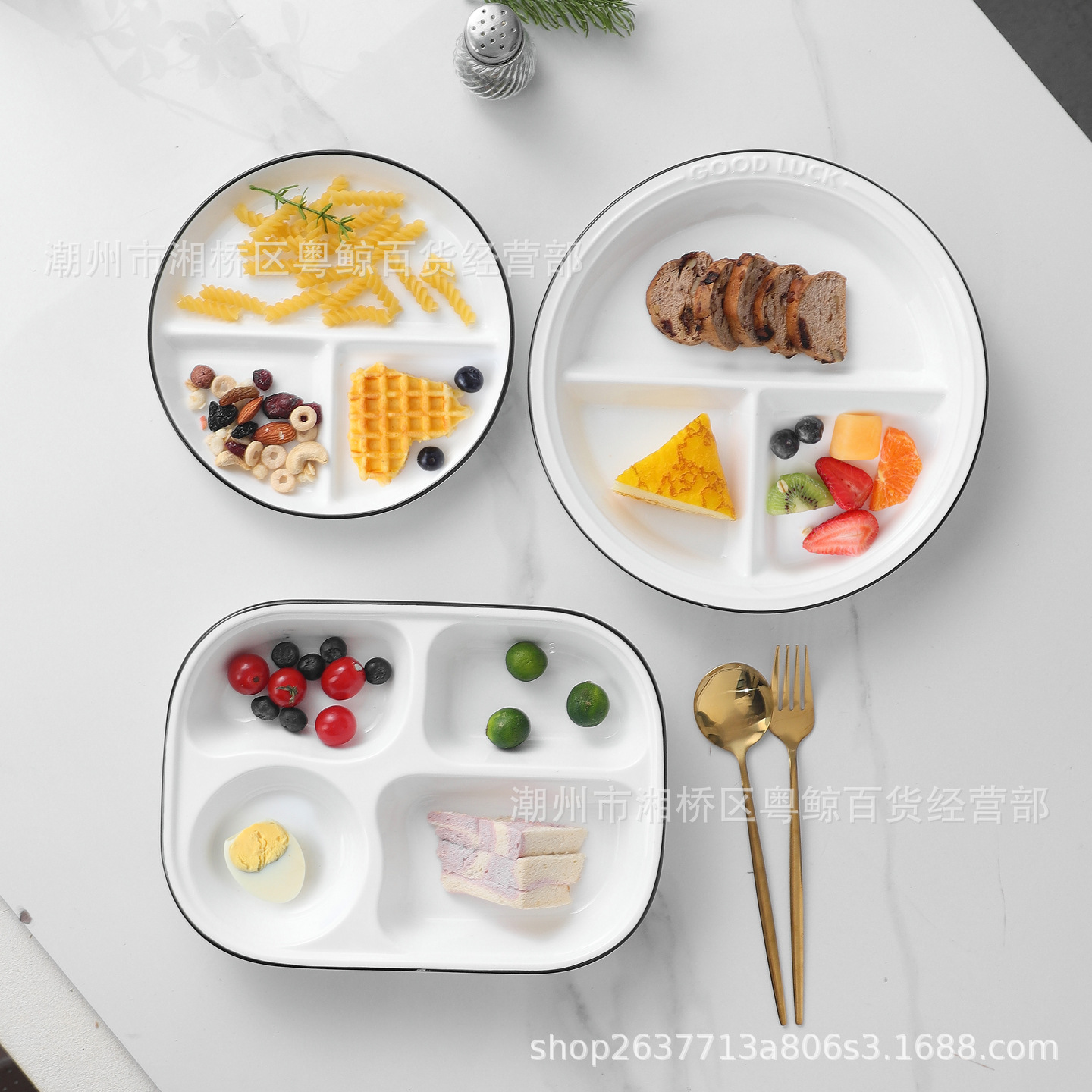 간단한 세라믹 접시 가정용 3 구획 분할 디너 플레이트 아침 식사 접시 접시 과일 접시 선물 상자 세트 판촉 선물스토어 가기
