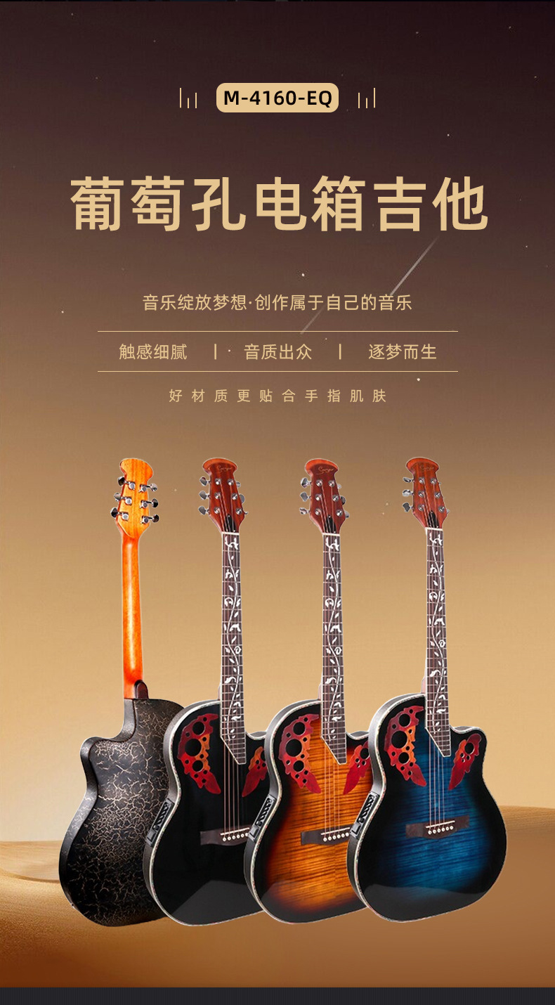 제조사 직판 M-4160-EQ 무광 41inch 포도홀 접착식 일렉트릭 기타 초보자용 연습용 기타