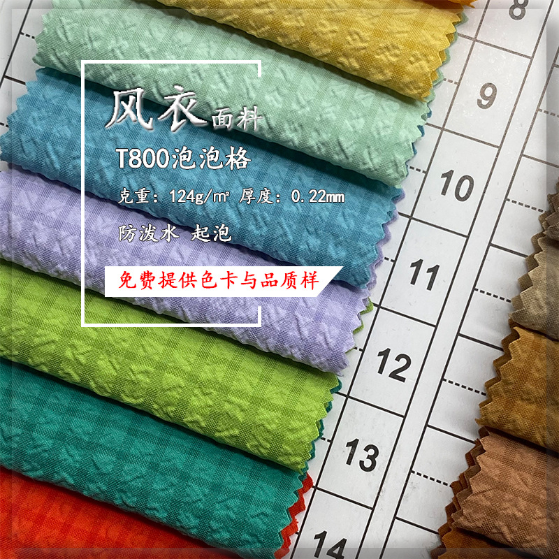 폴리 에스테르 천 높은 탄성 T800 버블 체크 무늬 엠보싱 방수 모자 원피스 윈드 브레이커 코트 반바지 의류 직물스토어 가기