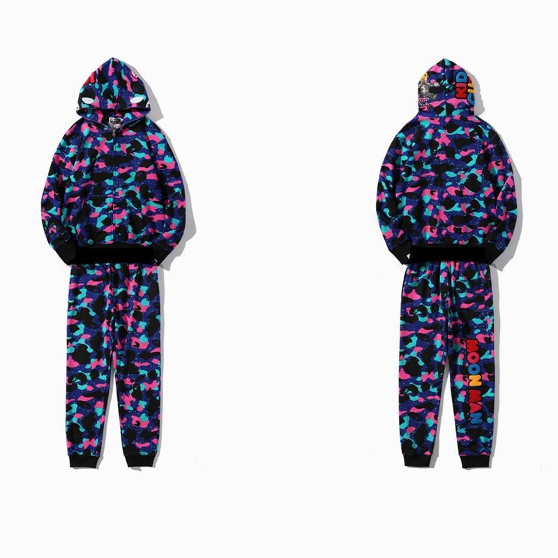 국경 간 가을과 겨울 스웨터 바지 상어 세트 자수 디지털 인쇄 남녀 커플 세트 스웨트 코트