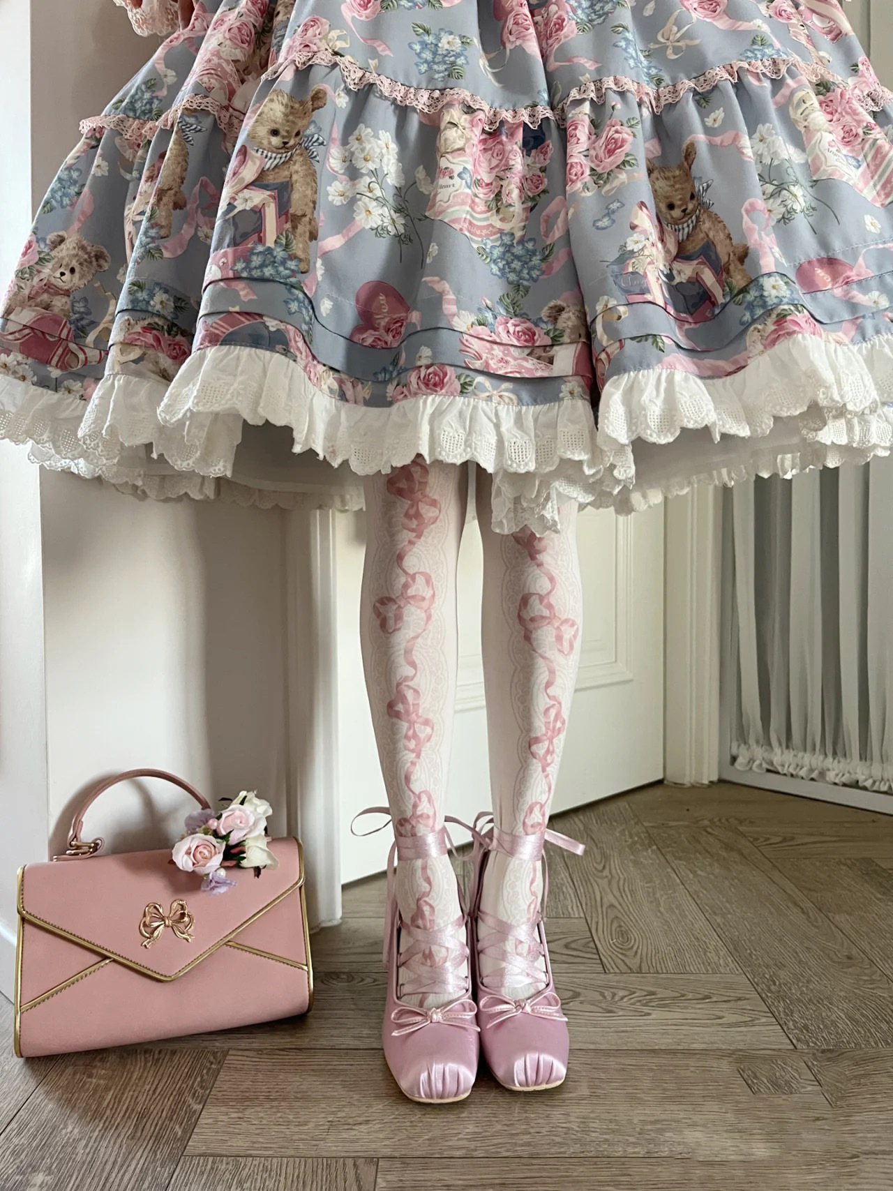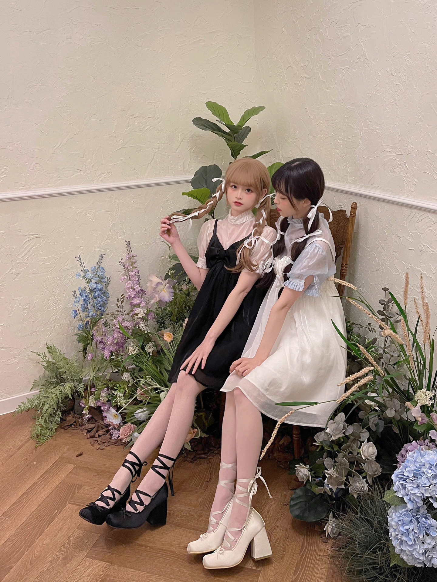 핑크 크로스 스트랩 하이힐 청키 힐 여아 발레 슈즈 아웃웨어 프랑스 우아한 새틴 로리타 펌프스스토어 가기