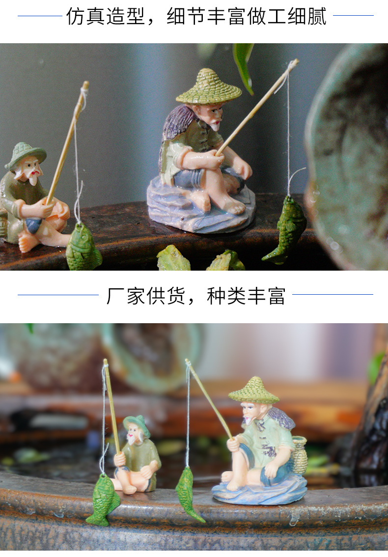 폭발성 마이크로 조경 장식품 고대 방법 물고기 양식 큰 낚시 남자 그림 작은 풍경 화분 원예 세트 장식