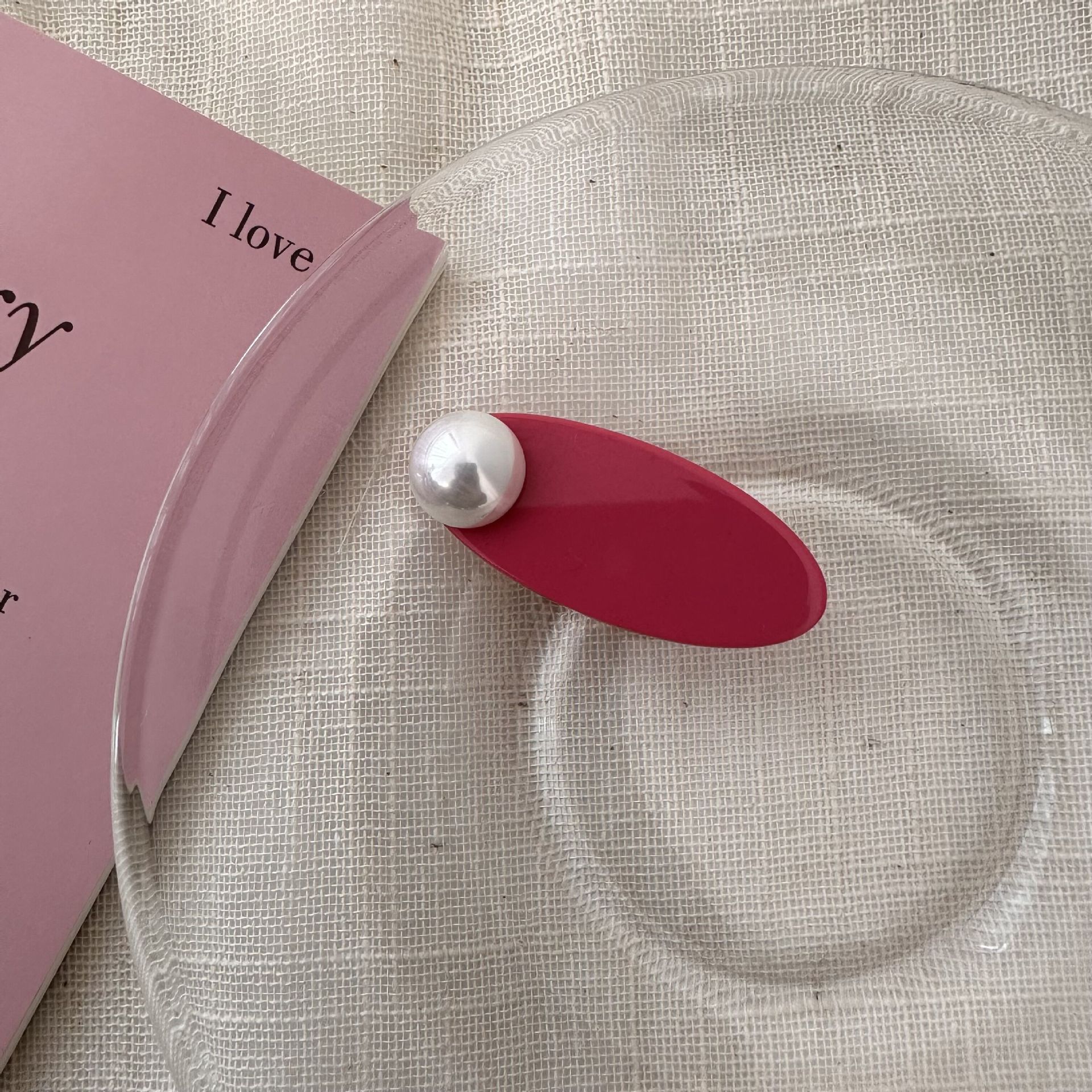여름 새로운 아세트산 광택 질감 소녀 달콤한 진주 가장자리 클립 헤어 클립 한국 장미 핑크 Duckbill 클립 헤어 클립