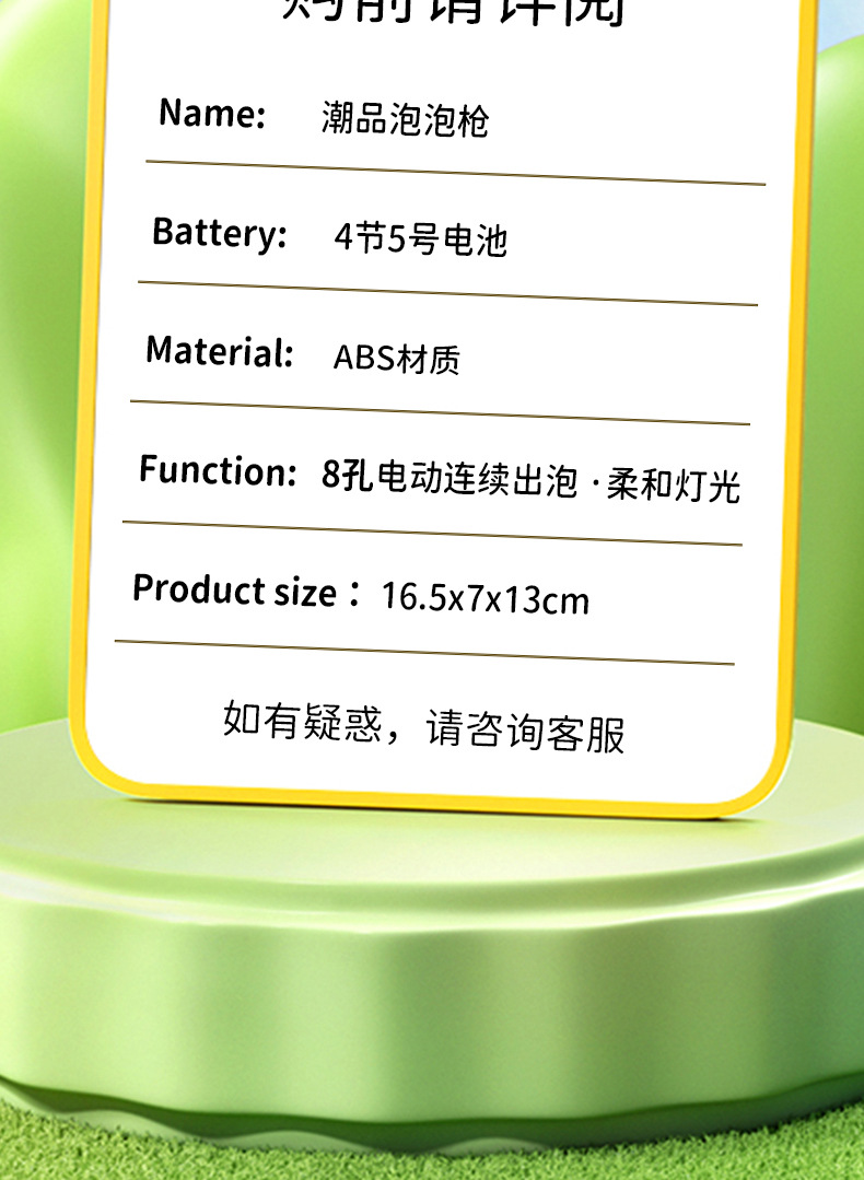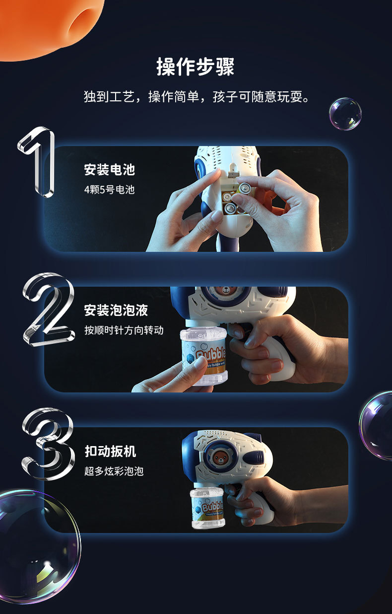 *目前市场上所有电动玩具请勿使用南孚/金霸王/双鹿牌等,以免电流过于强大烧毁内部电路或缩短玩具使用寿命。