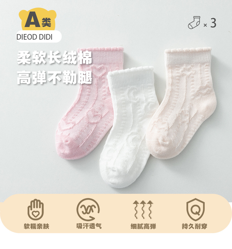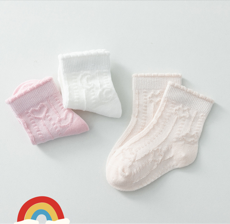 어린이 양말 메쉬 통기성 아기 빗질면 양말 여름 중소 어린이 튜브 양말 얇은 아기 양말 3 쌍