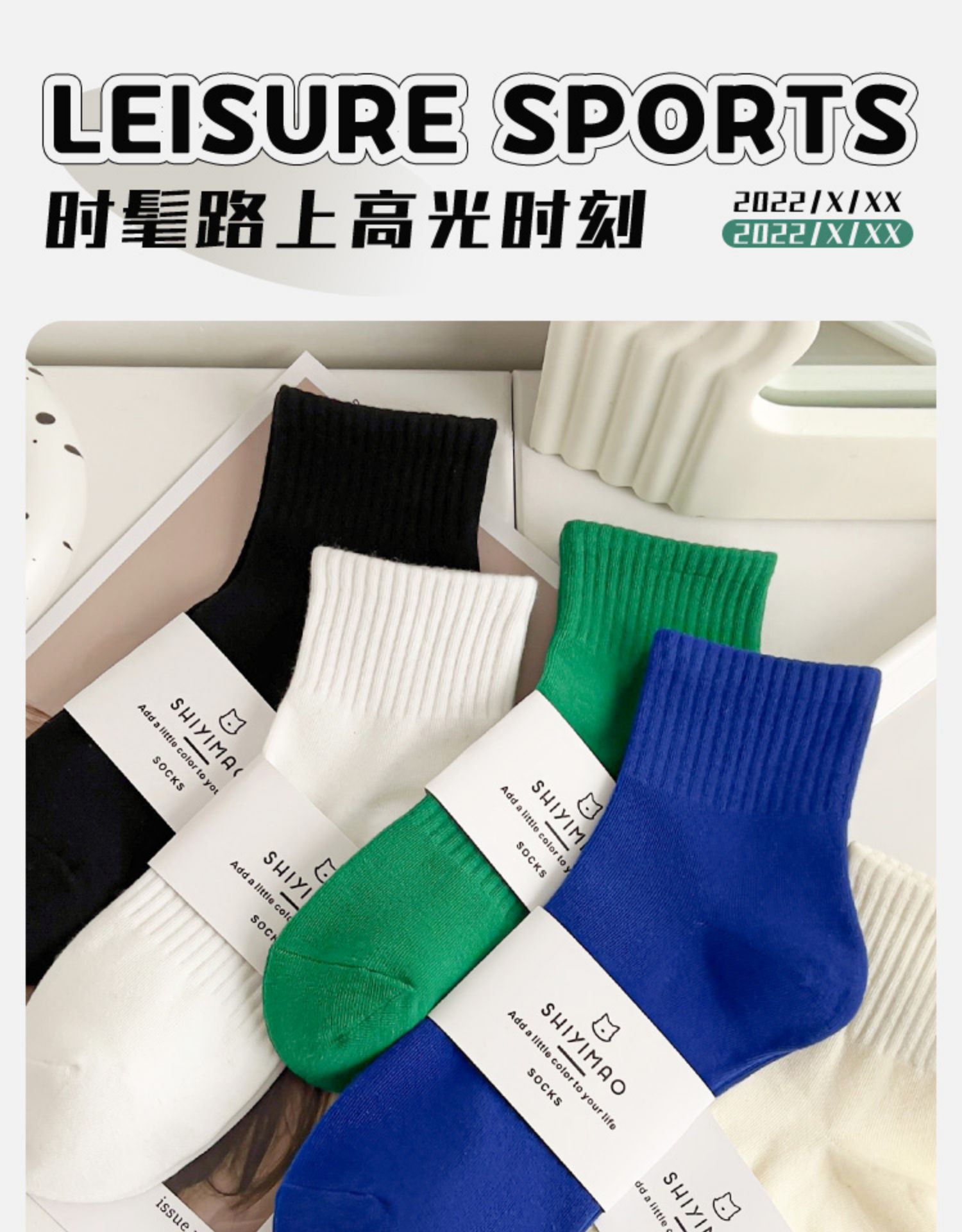 흰색 양말 여성용 미드 레인지 양말 여름 양말 봄과 가을 얇은 미드 레인지 남성용 트렌디 한 단색 스포츠 남성 양말스토어 가기
