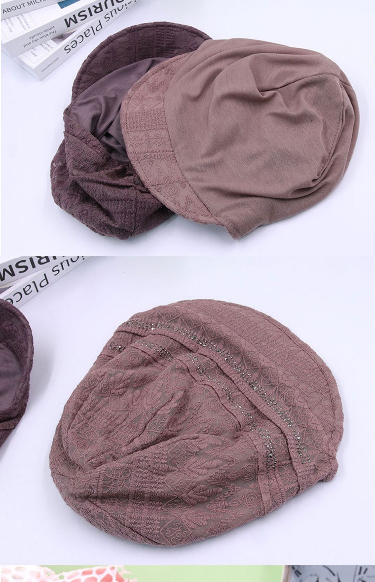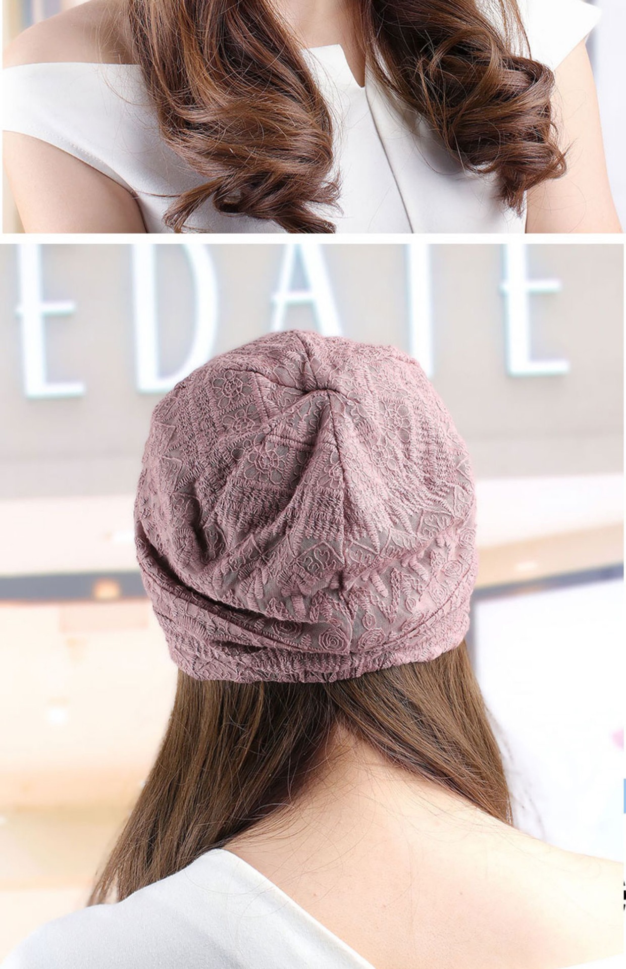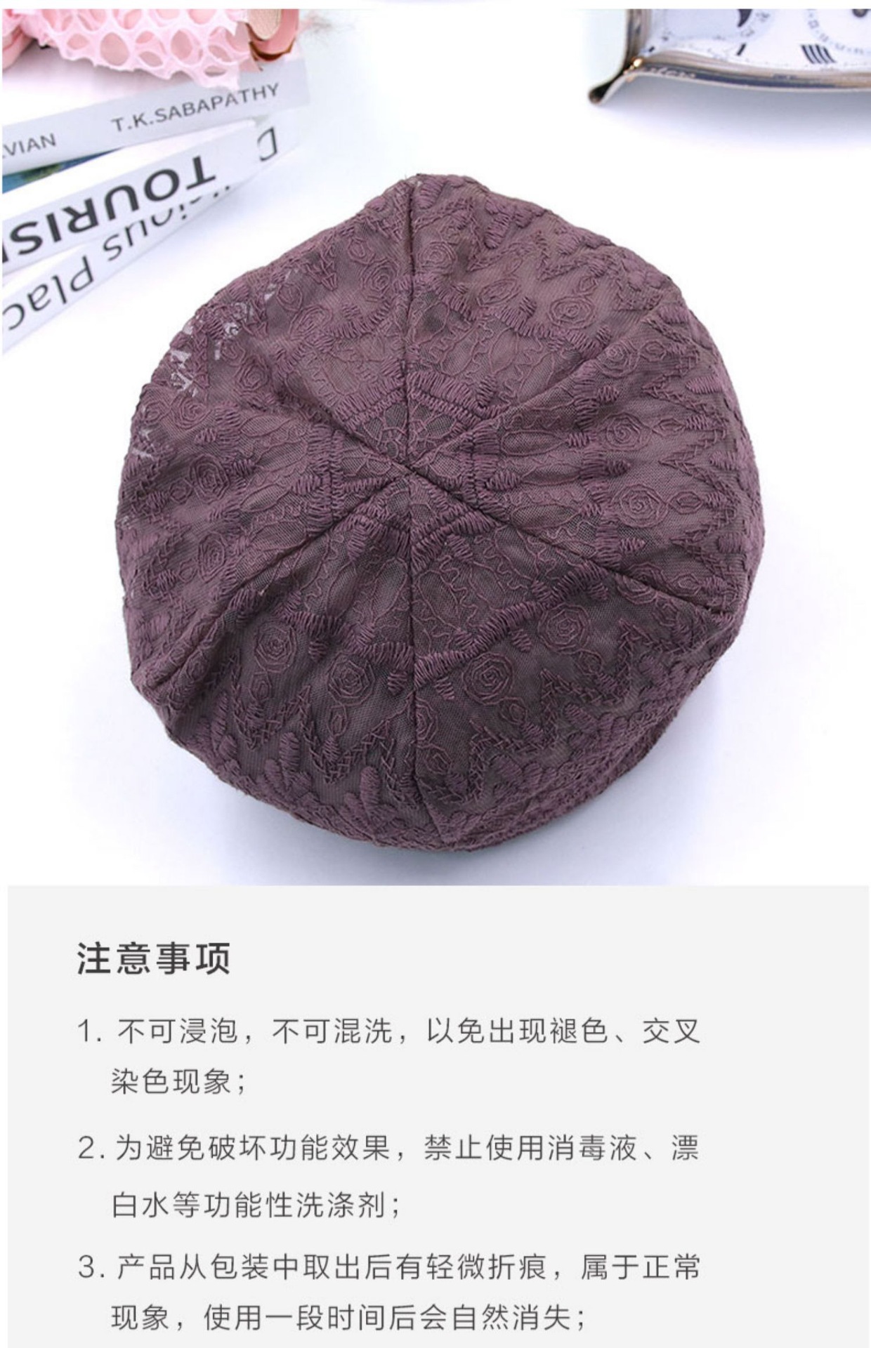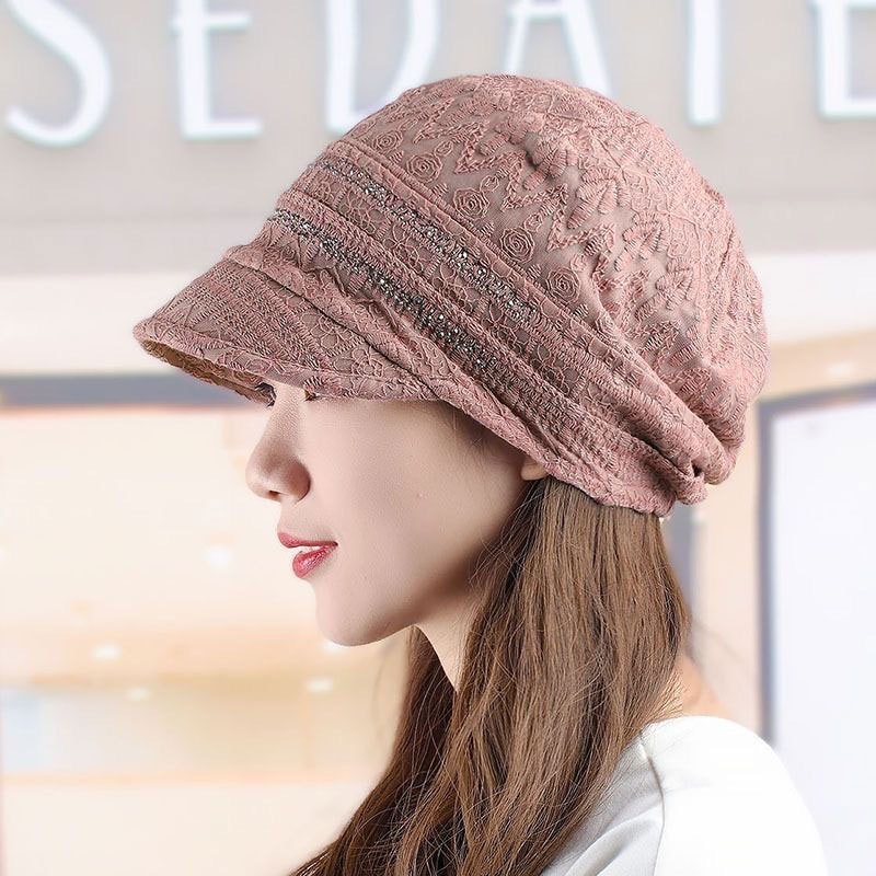 가벼운 통기성 Baotou 모자 여자의 봄과 여름 우아한 넓은 가장자리 스택 모자 메쉬 레이스 테이프 모자 대머리 모자