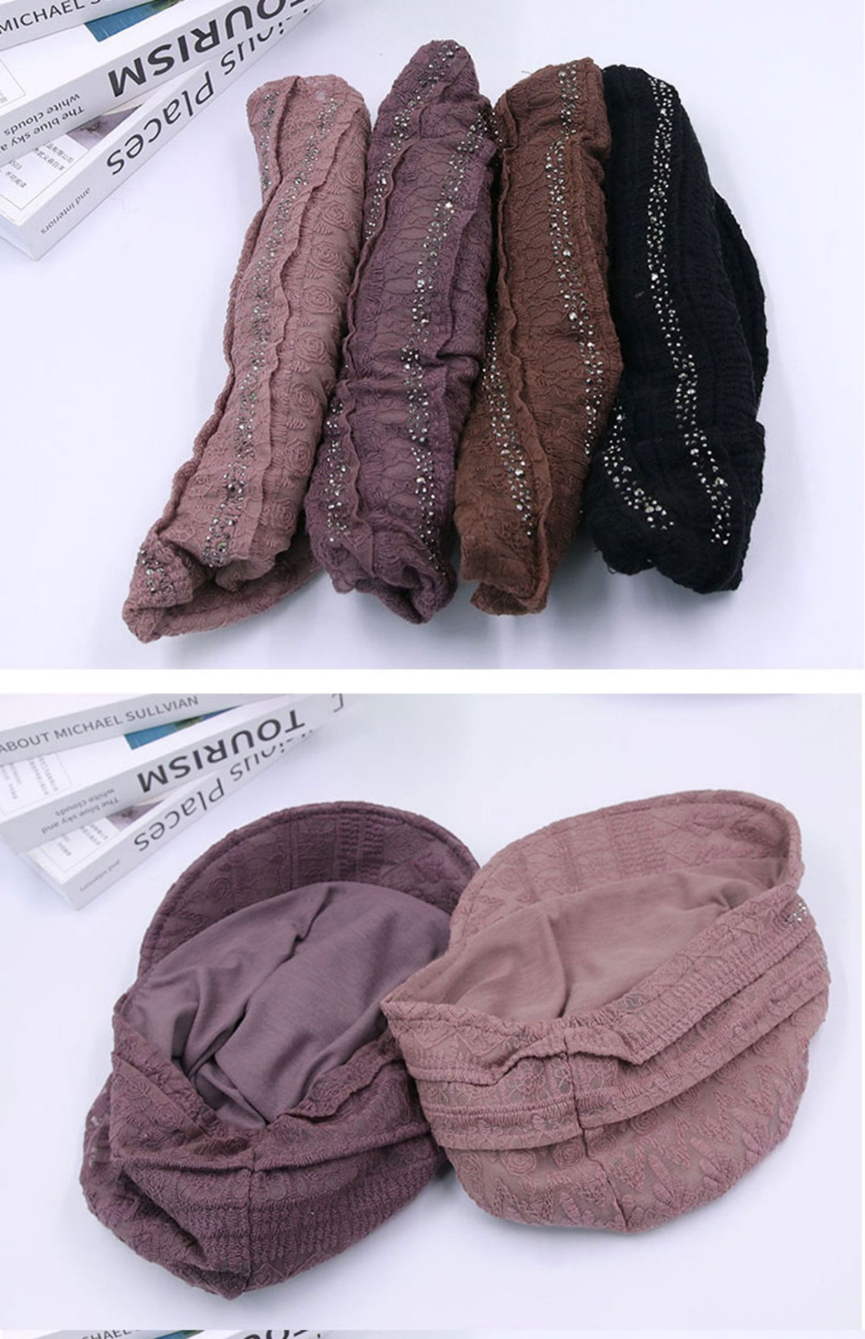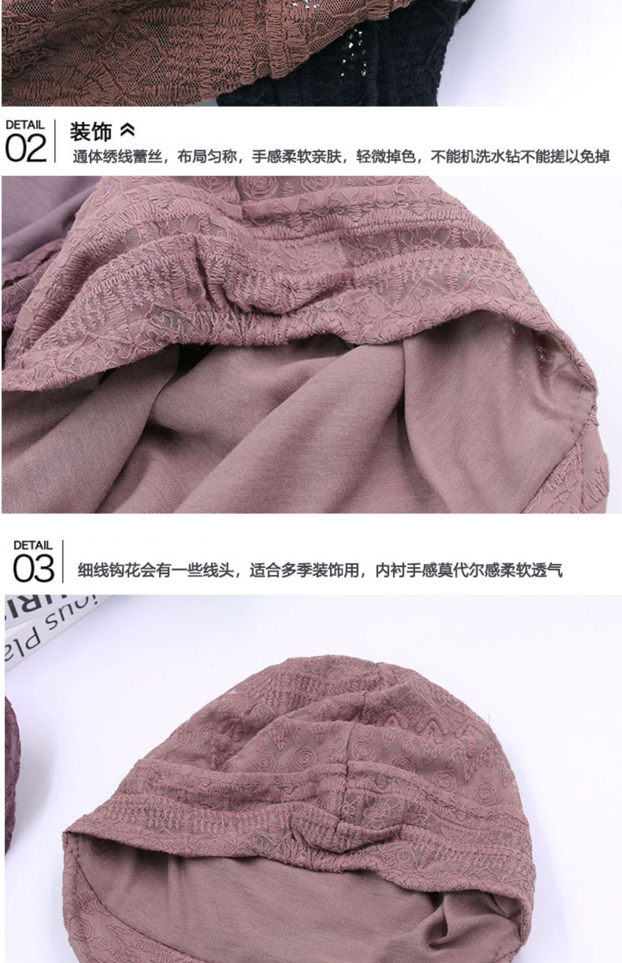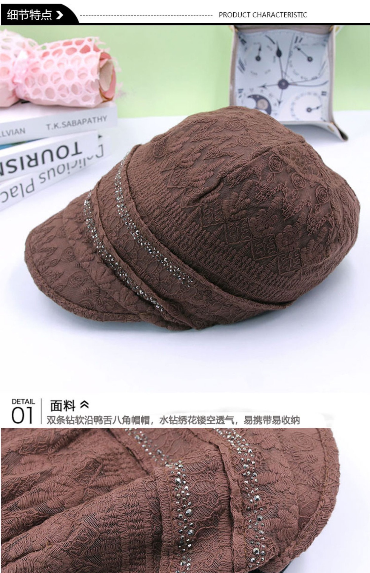 가벼운 통기성 Baotou 모자 여자의 봄과 여름 우아한 넓은 가장자리 스택 모자 메쉬 레이스 테이프 모자 대머리 모자