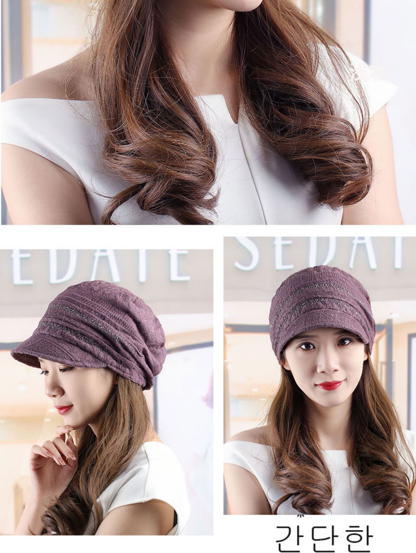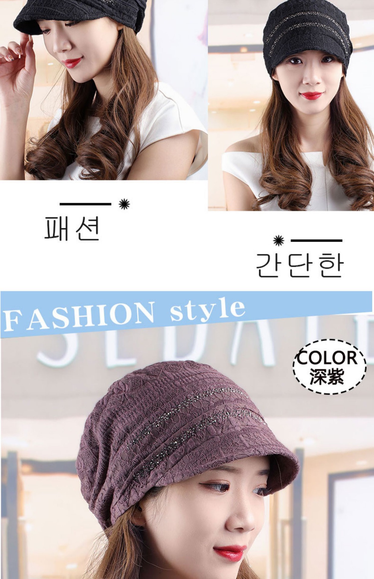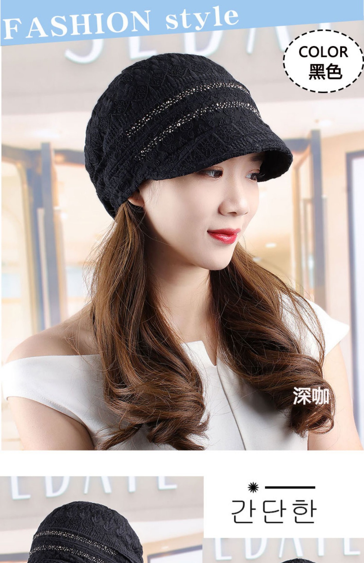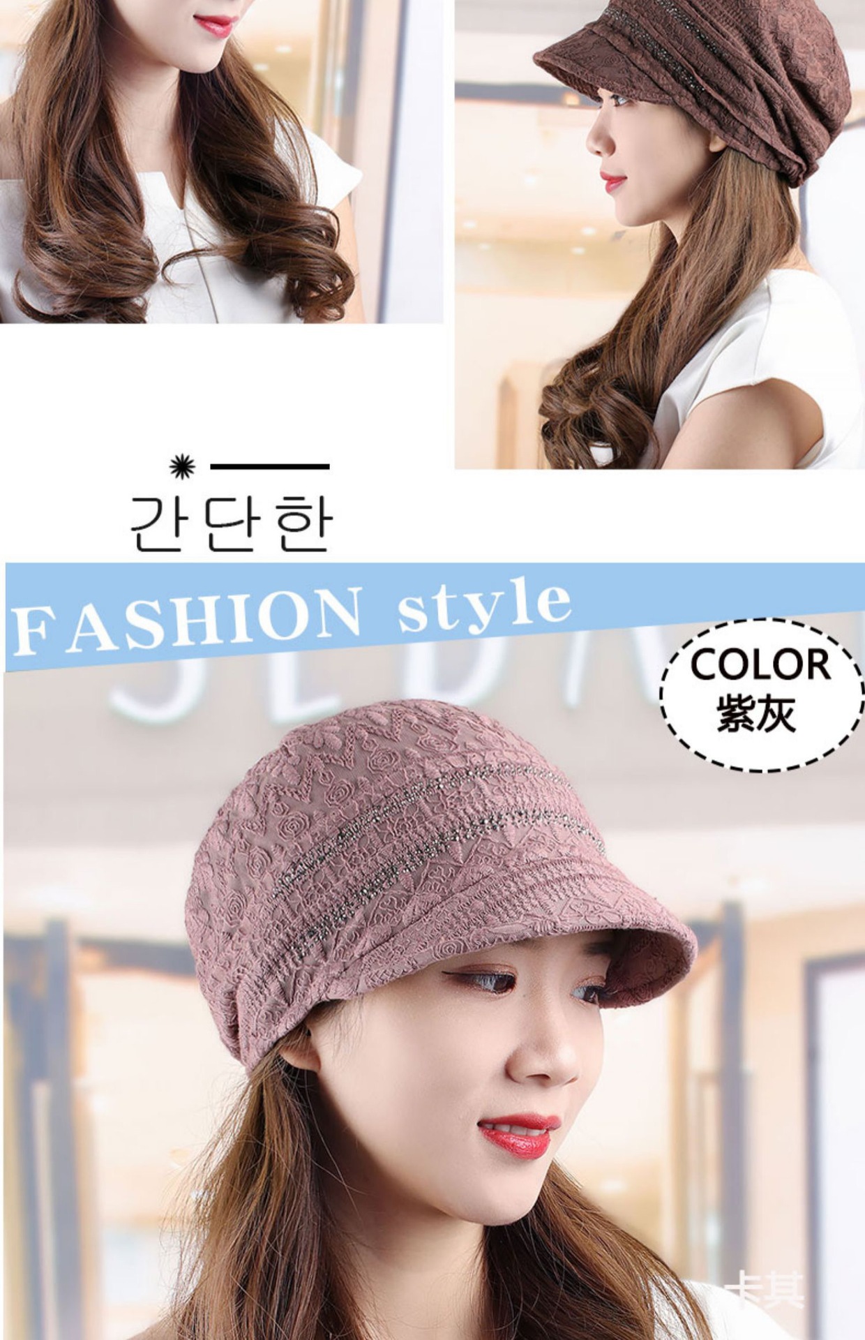 가벼운 통기성 Baotou 모자 여자의 봄과 여름 우아한 넓은 가장자리 스택 모자 메쉬 레이스 테이프 모자 대머리 모자스토어 가기