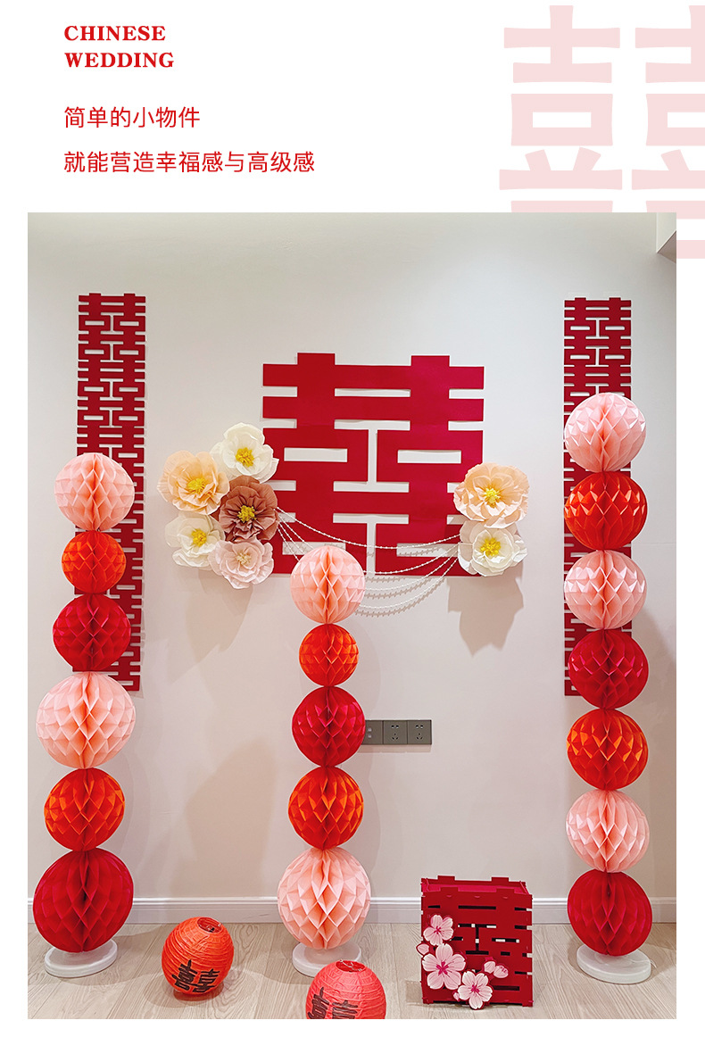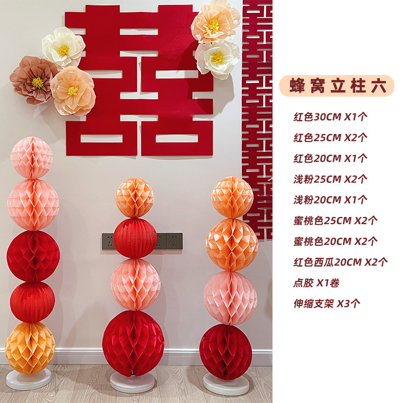 웨딩 룸 장식 세트 결혼식 장식 새 집 침실 거실 남자와 여자의 사각형 배경 벽 꽃 벌집 공 기둥스토어 가기