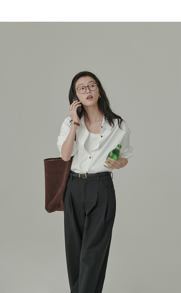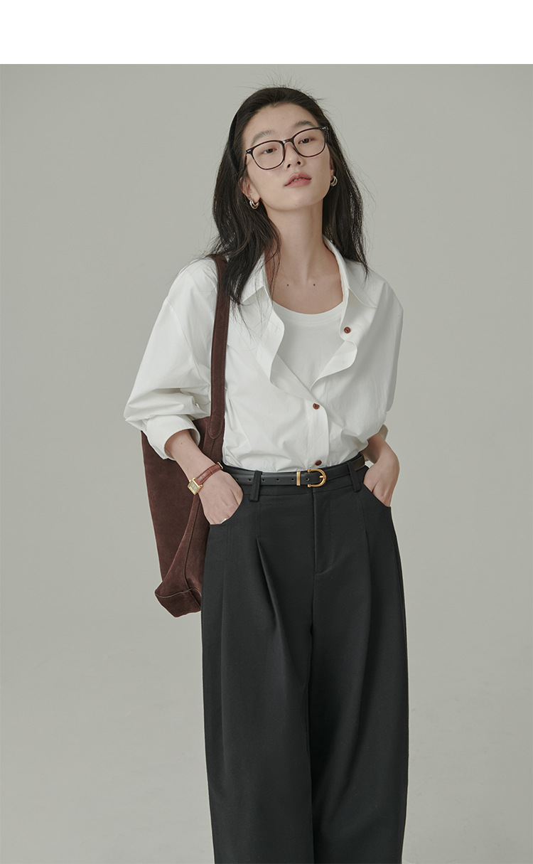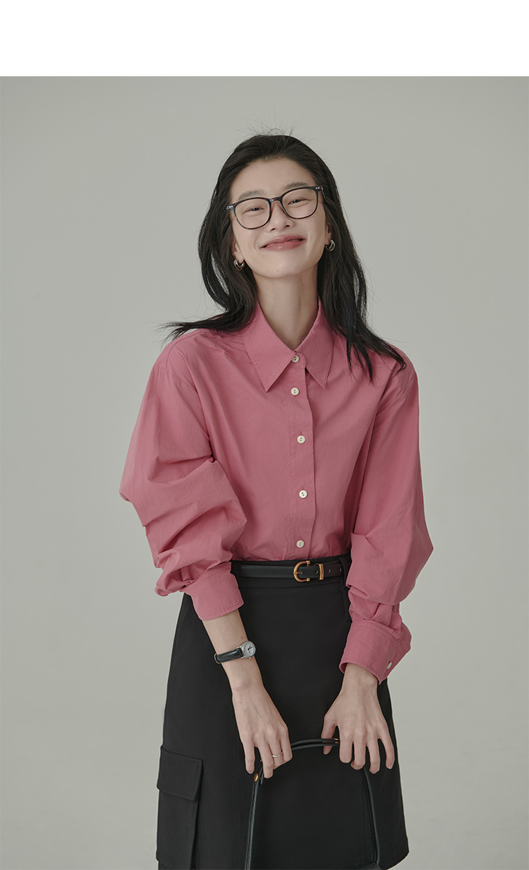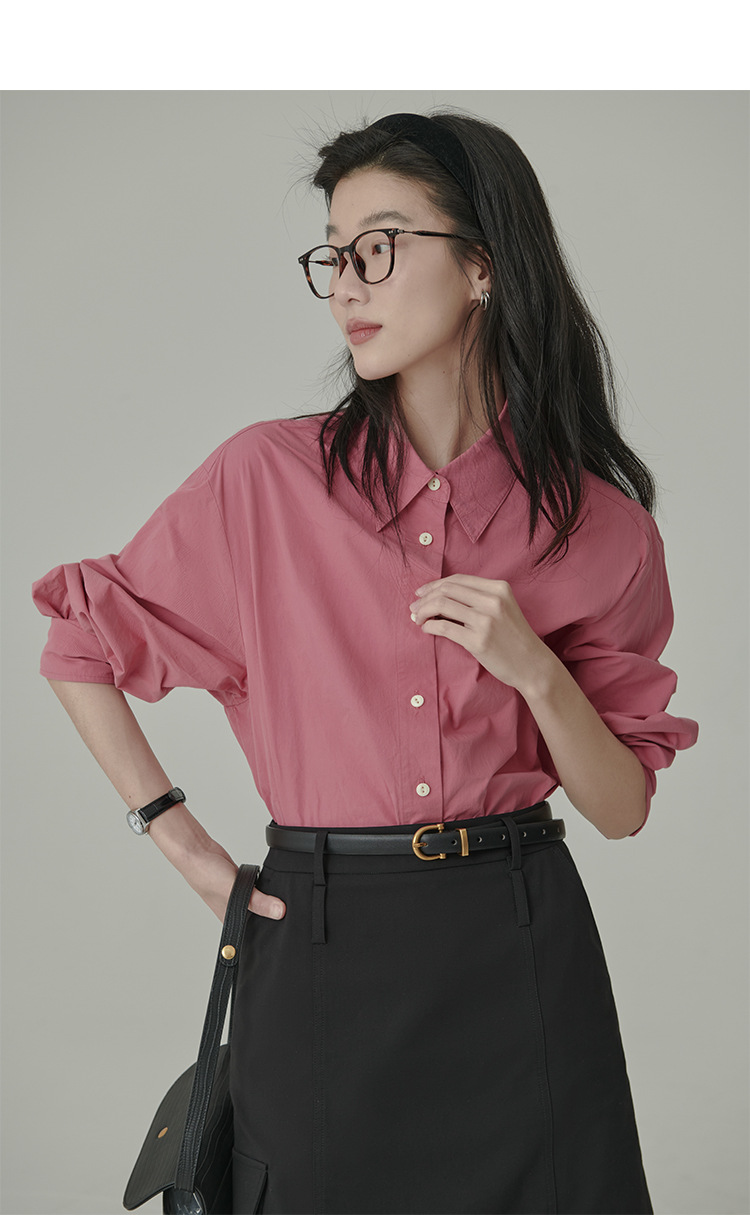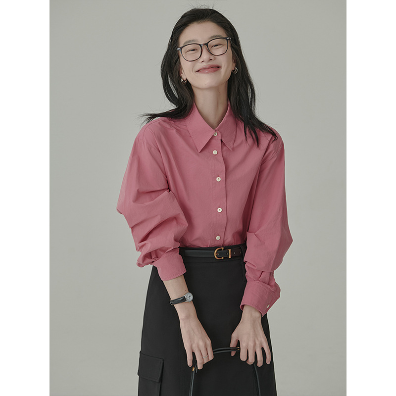 봄과 가을 심플 아티스틱 레인보우 슈가 컬러 코튼 화이트 셔츠 여성용 루즈한 모든 매치 슬리밍 기본 셔츠스토어 가기