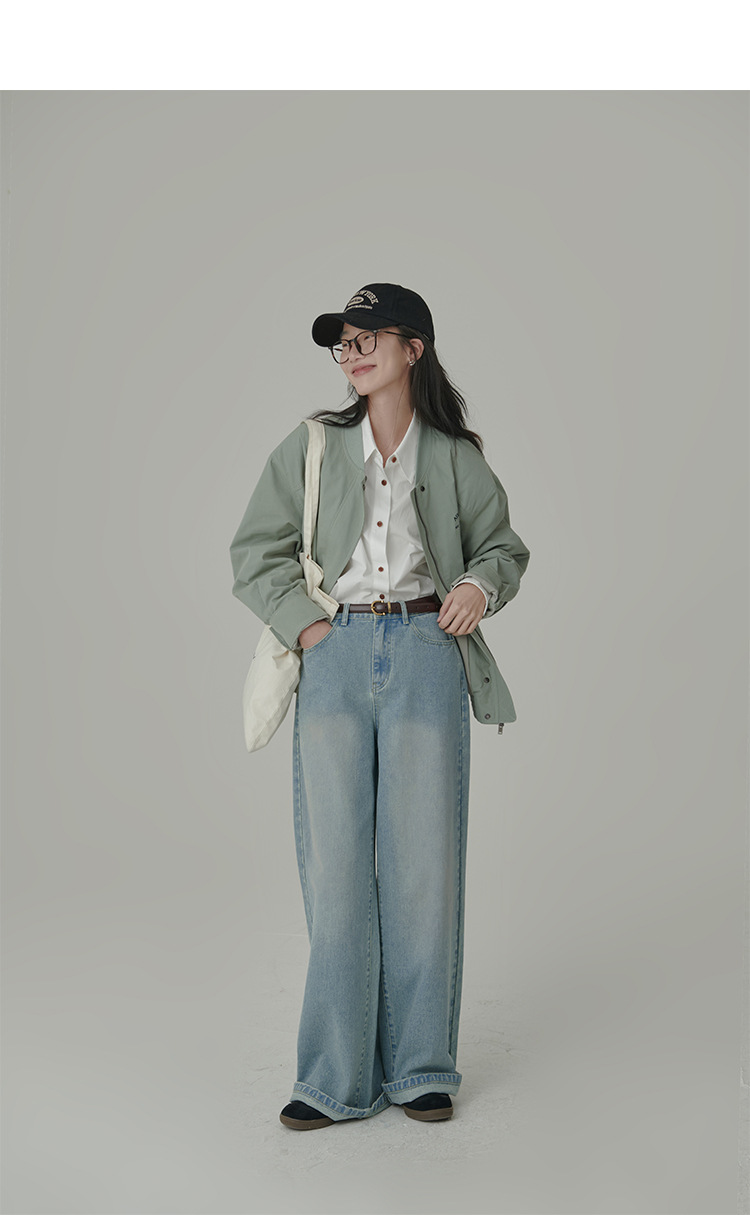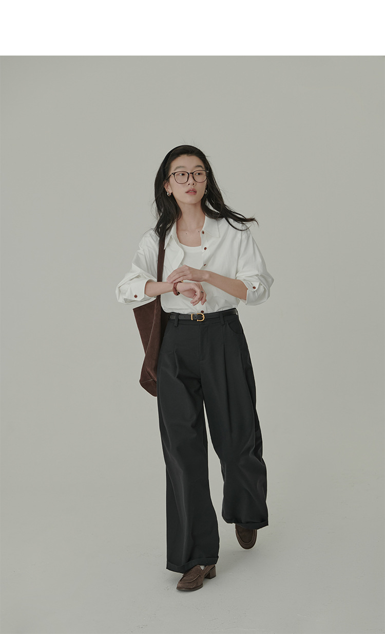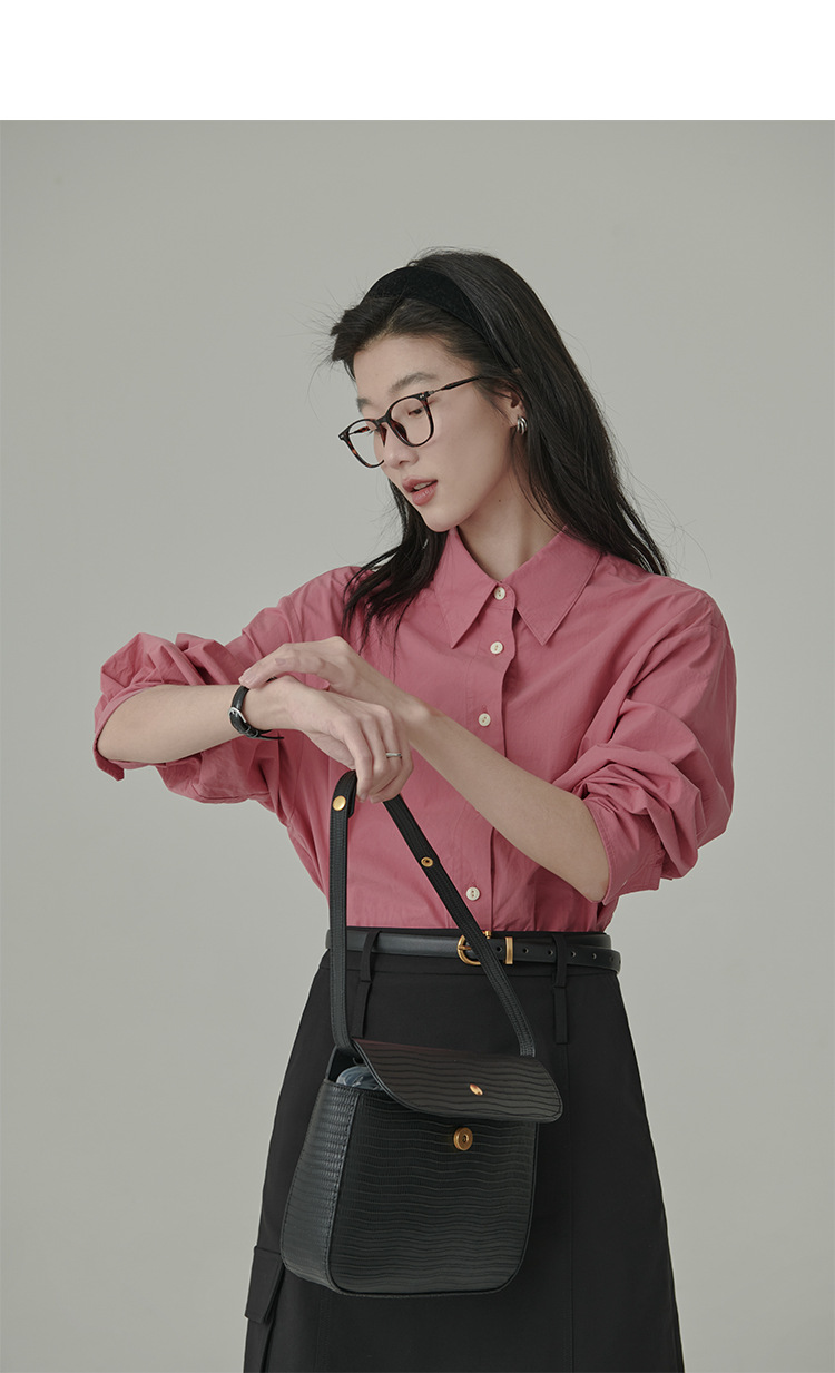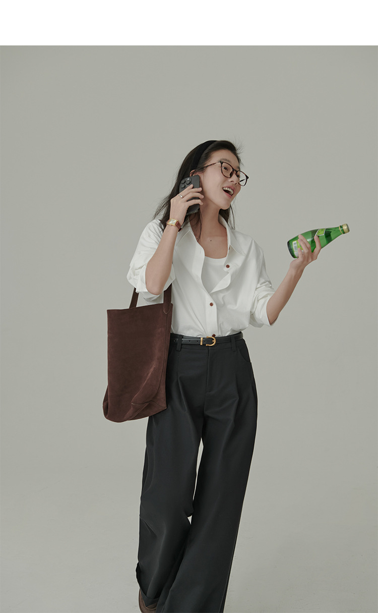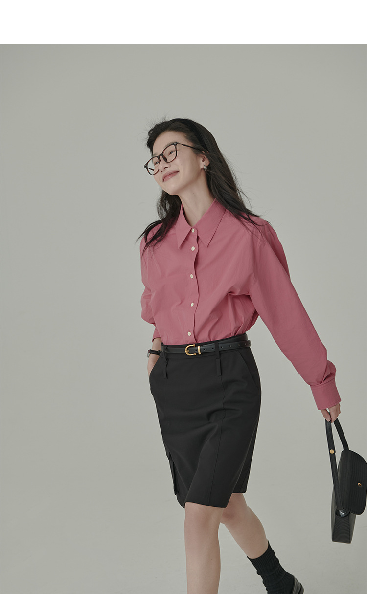 봄과 가을 심플 아티스틱 레인보우 슈가 컬러 코튼 화이트 셔츠 여성용 루즈한 모든 매치 슬리밍 기본 셔츠스토어 가기