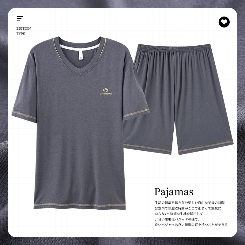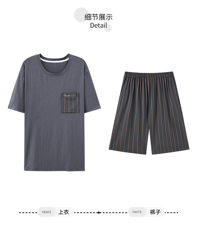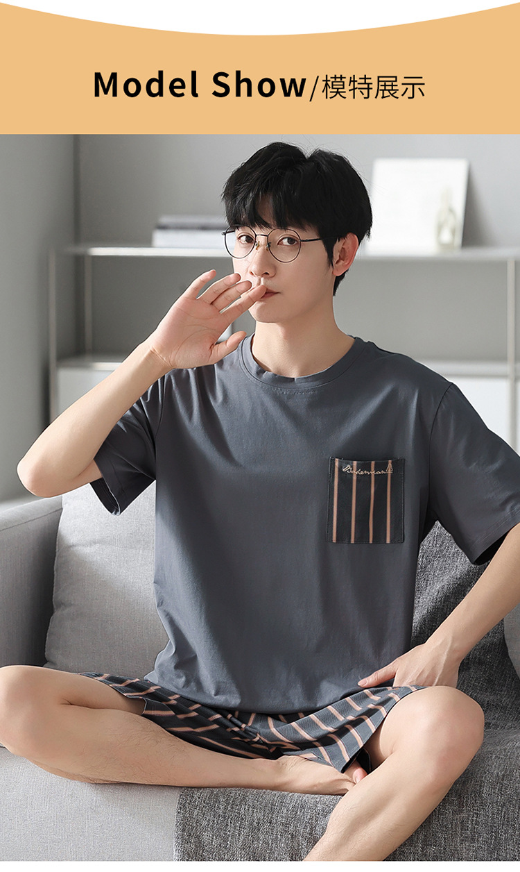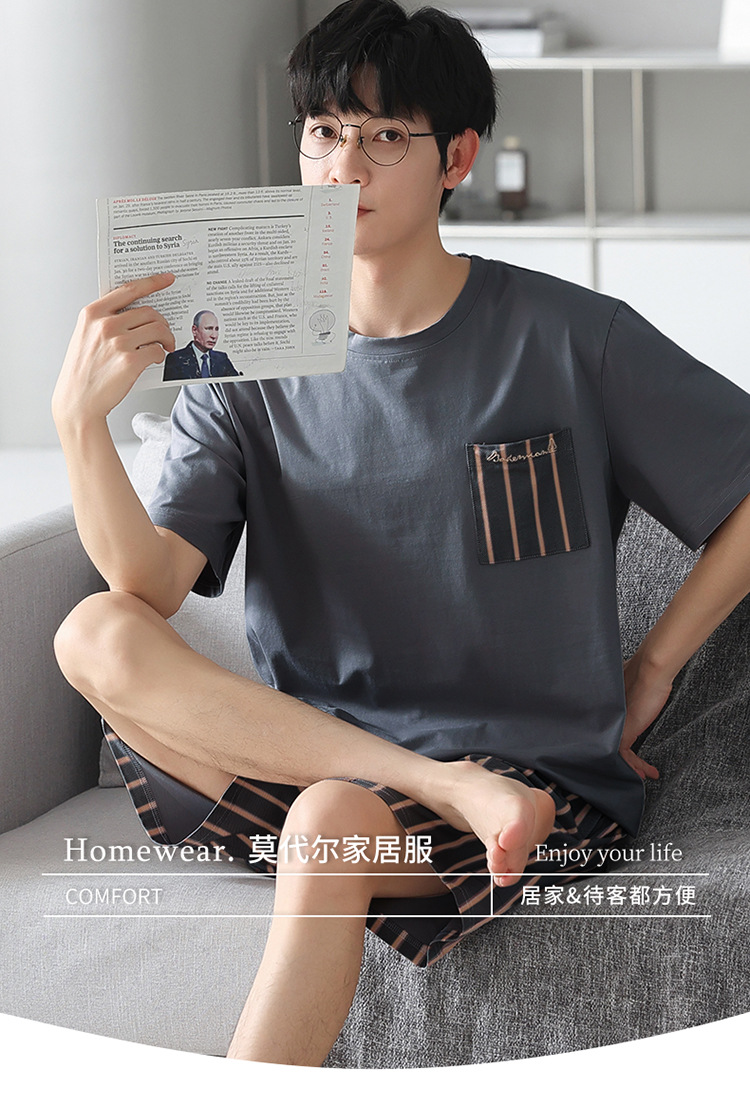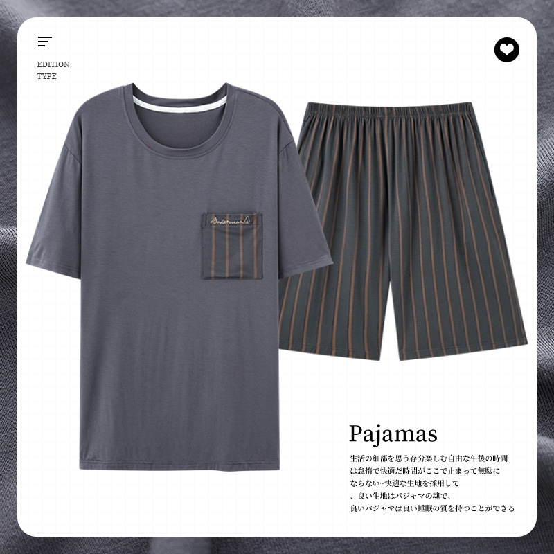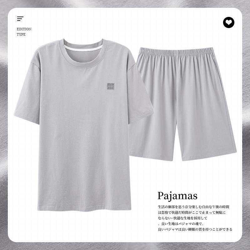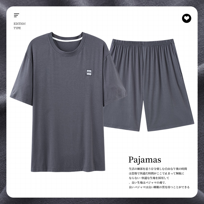 남성용 잠옷 여름 얇은 모달 면 반팔 반바지 크루넥 풀오버 캐주얼 가정복 여름스토어 가기