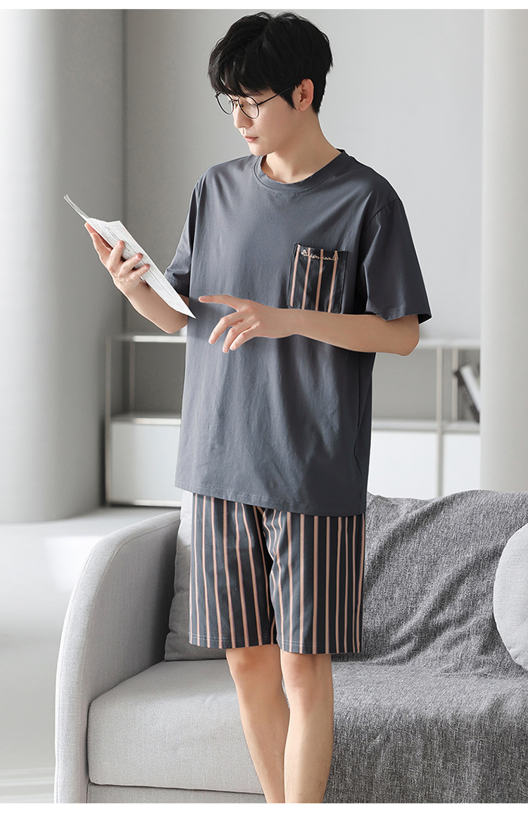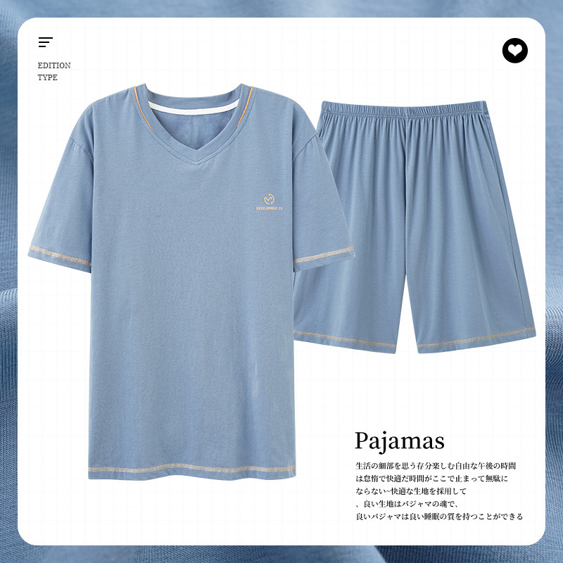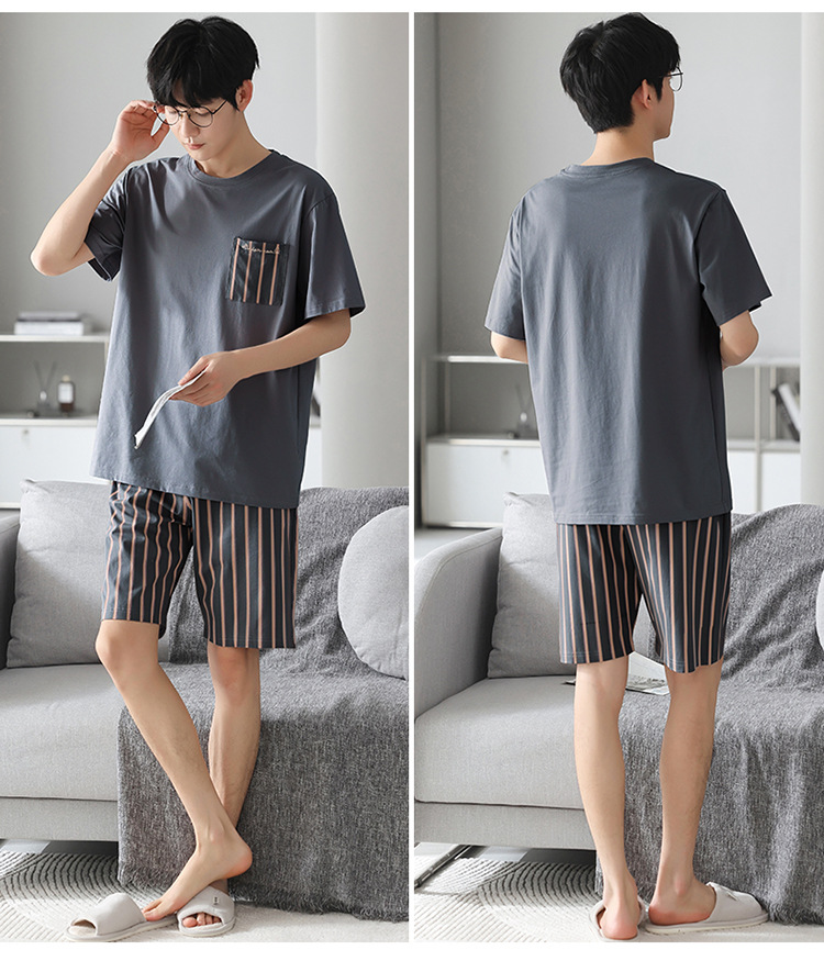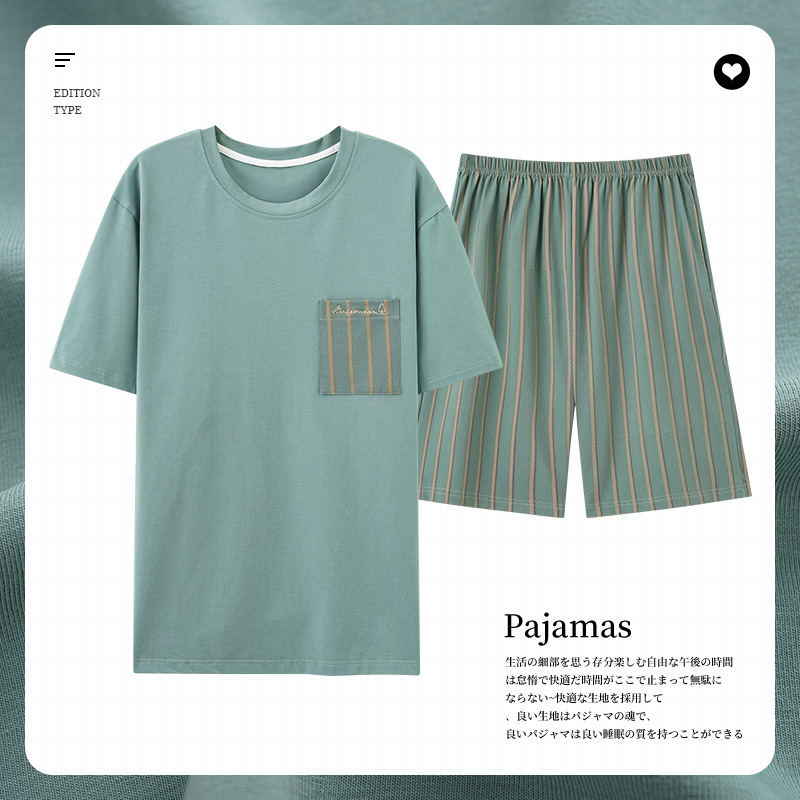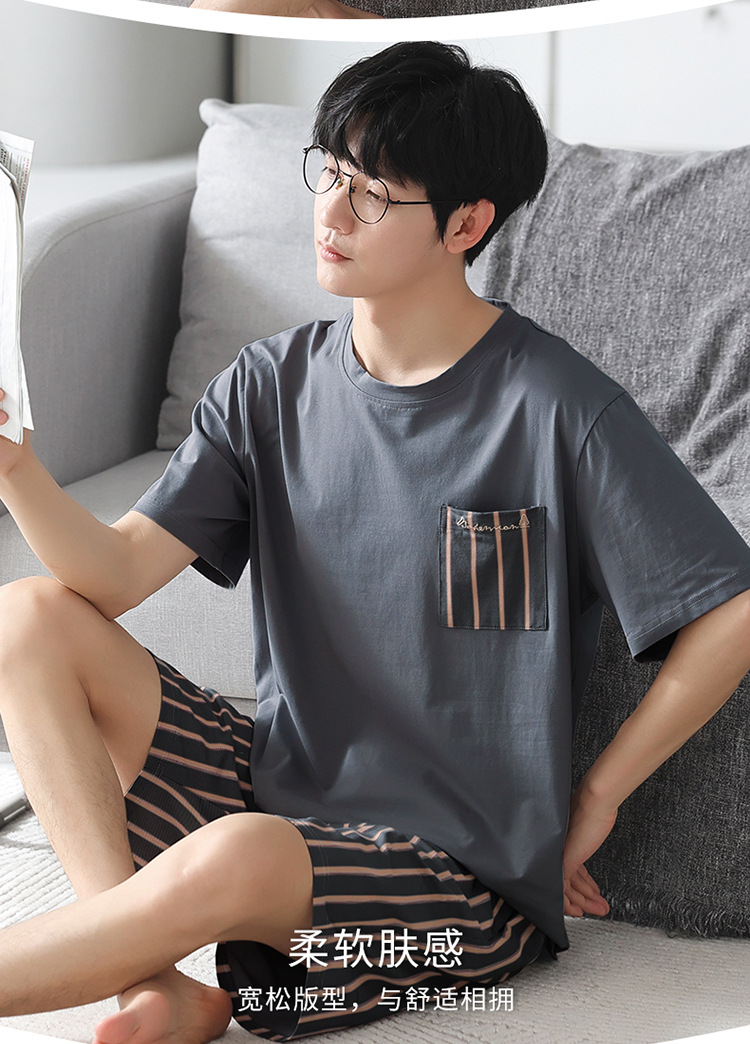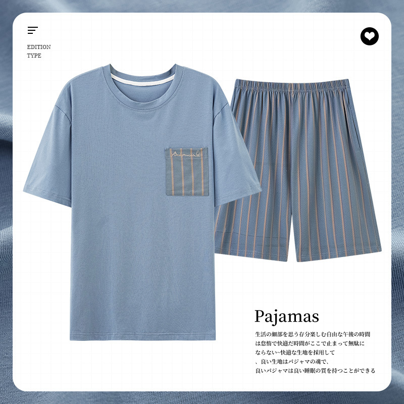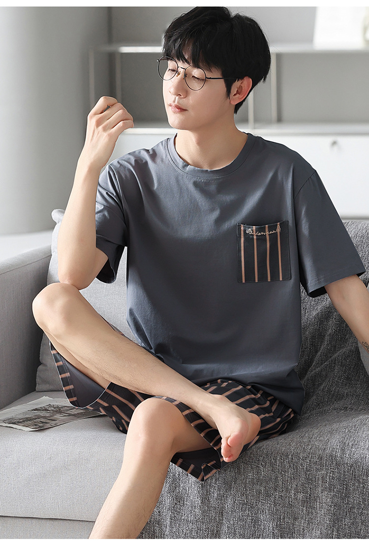 남성용 잠옷 여름 얇은 모달 면 반팔 반바지 크루넥 풀오버 캐주얼 가정복 여름스토어 가기
