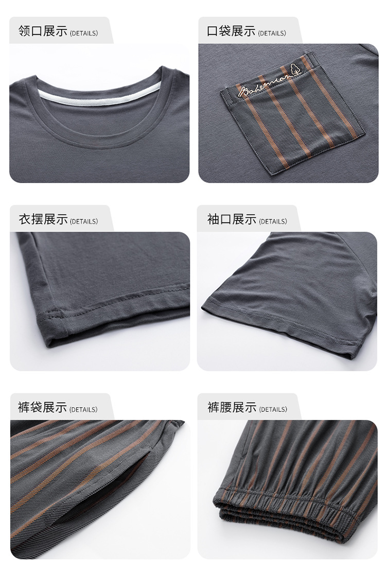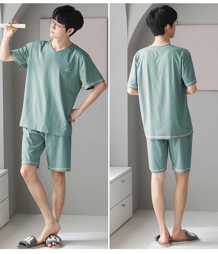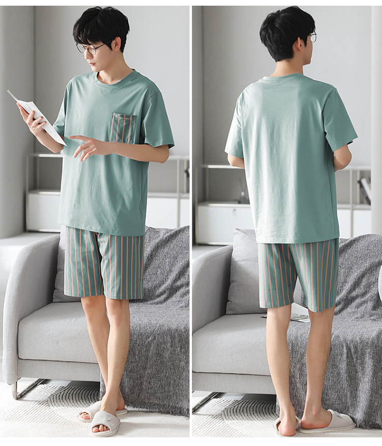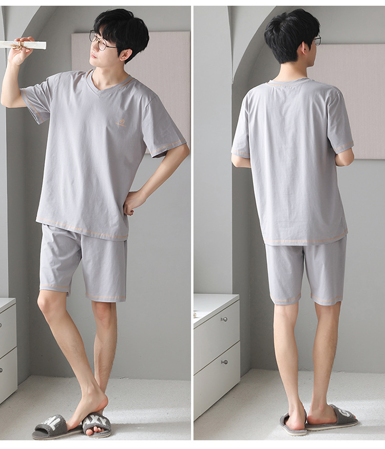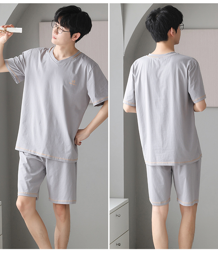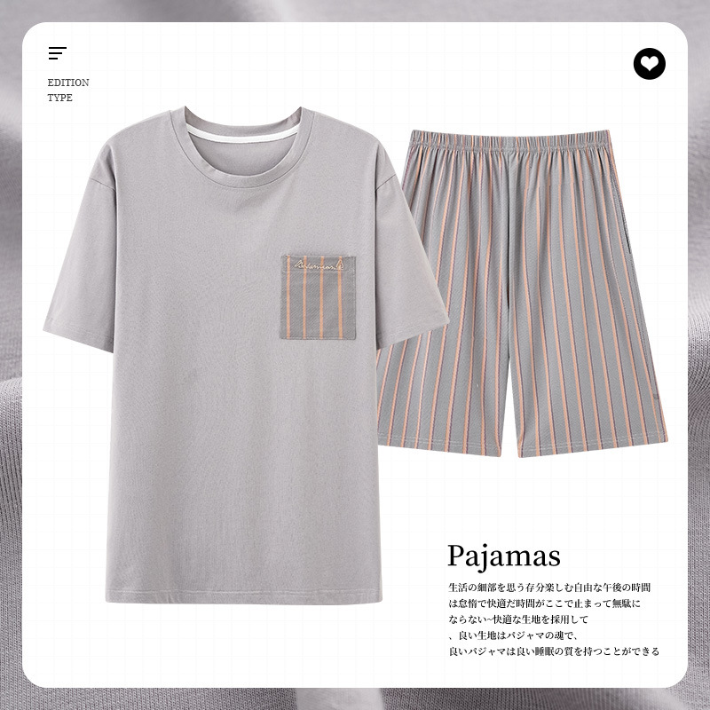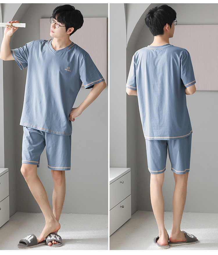남성용 잠옷 여름 얇은 모달 면 반팔 반바지 크루넥 풀오버 캐주얼 가정복 여름스토어 가기