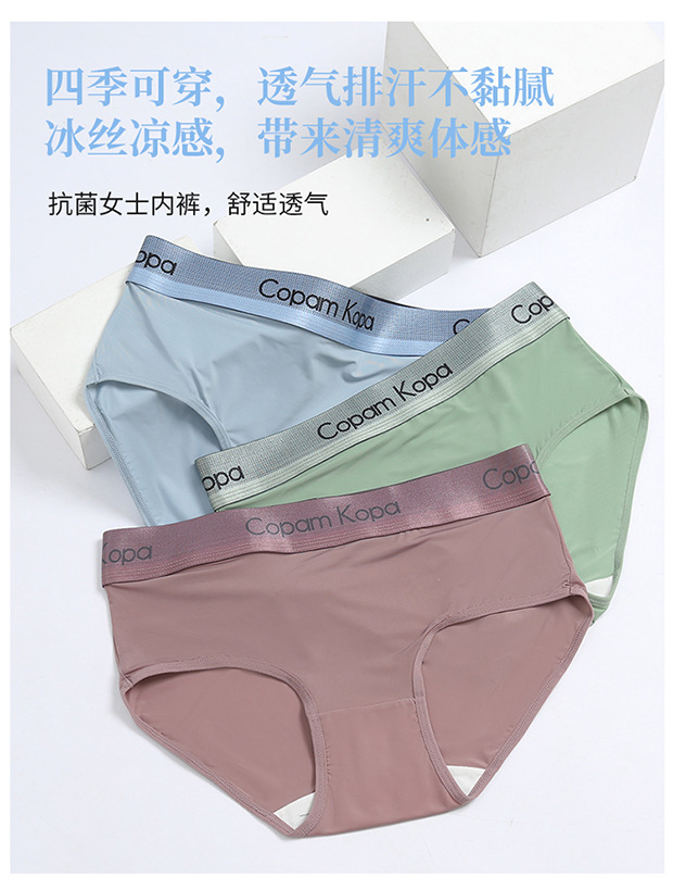 여성용 아이스 실크 팬티, 삼각형, 통기성, 항균, 중간 허리, 여름, 얇은, Traceless, 스포츠, 루즈, 플러스 사이즈