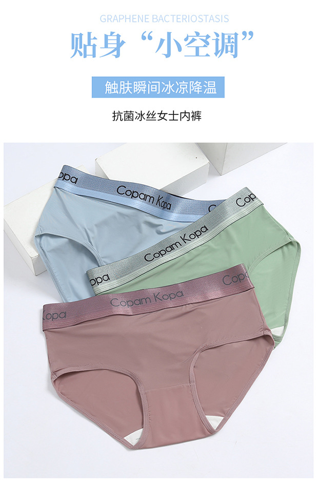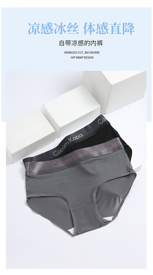여성용 아이스 실크 팬티, 삼각형, 통기성, 항균, 중간 허리, 여름, 얇은, Traceless, 스포츠, 루즈, 플러스 사이즈스토어 가기